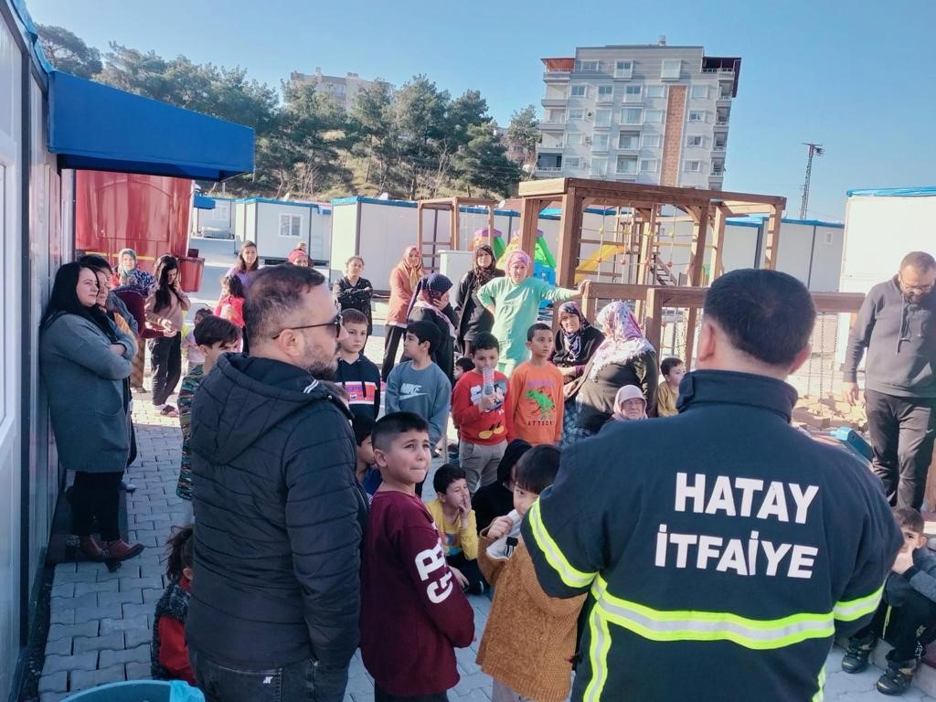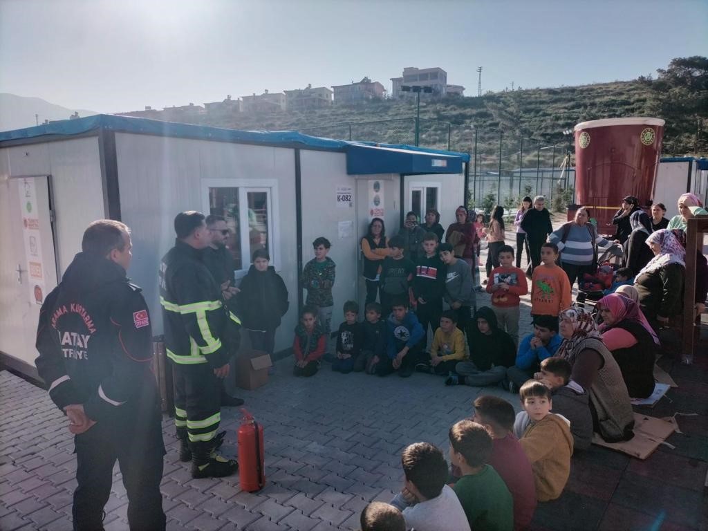Hatay’ın Belen ilçesindeki konteyner kentte yaşayan vatandaşlara yangın eğitimi verildi.