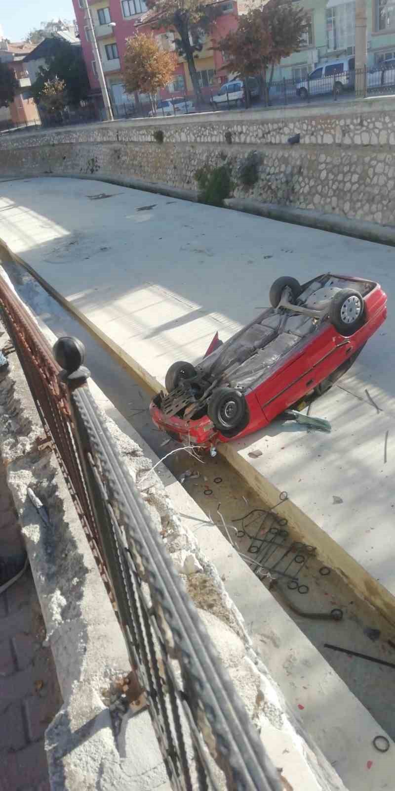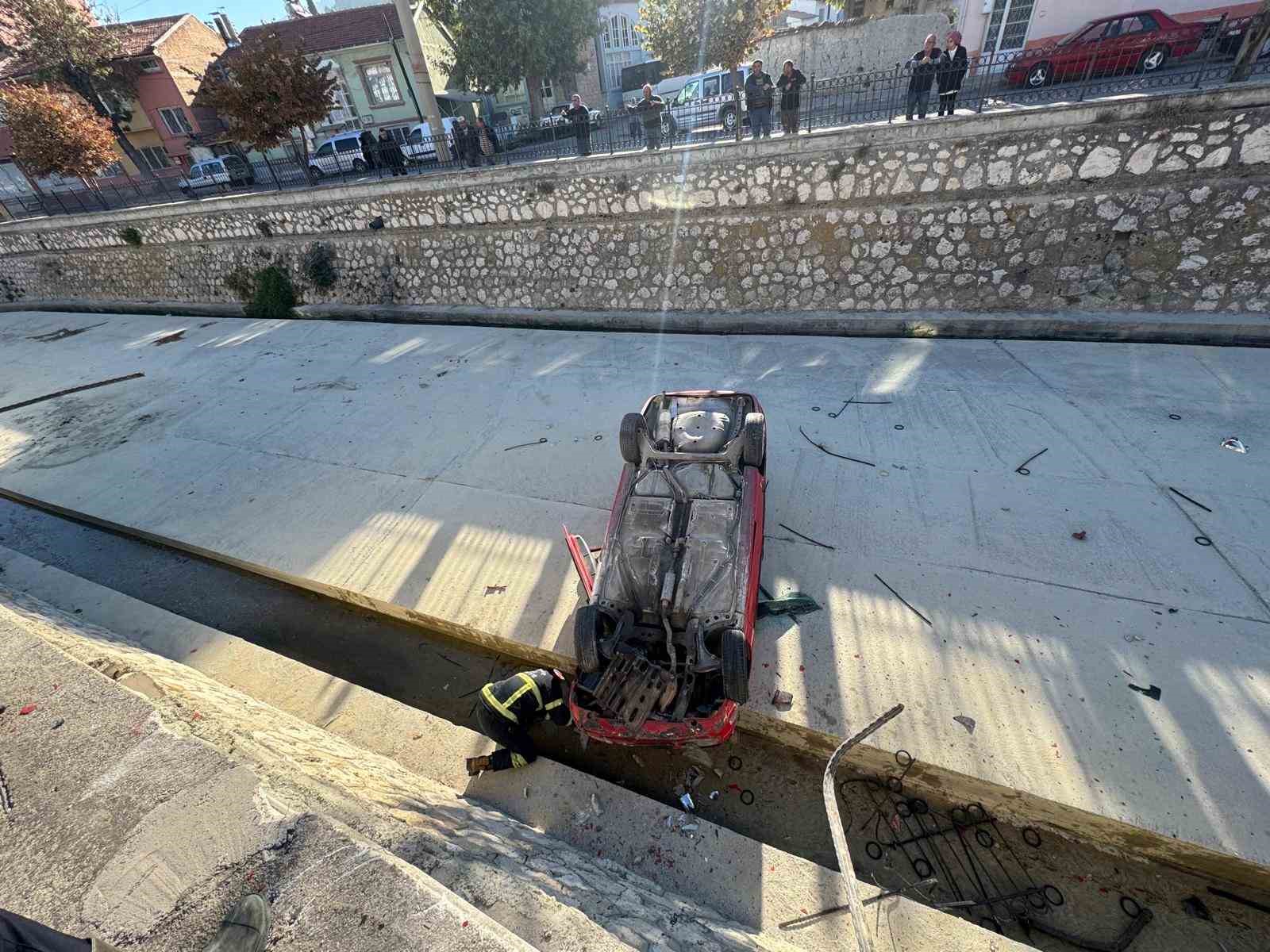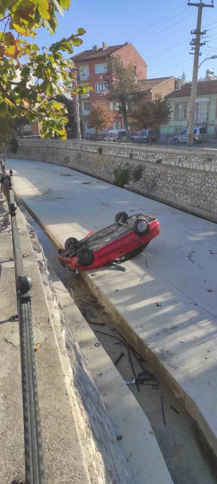 Burdur’da sabah saatlerinde seyir halindeki otomobil kontrolden çıkarak demir bariyerleri aşıp çaya düştü. Ters dönen araçtan kendi imkanlarıyla çıkan sürücü kazayı hafif sıyrıklarla atlattı.