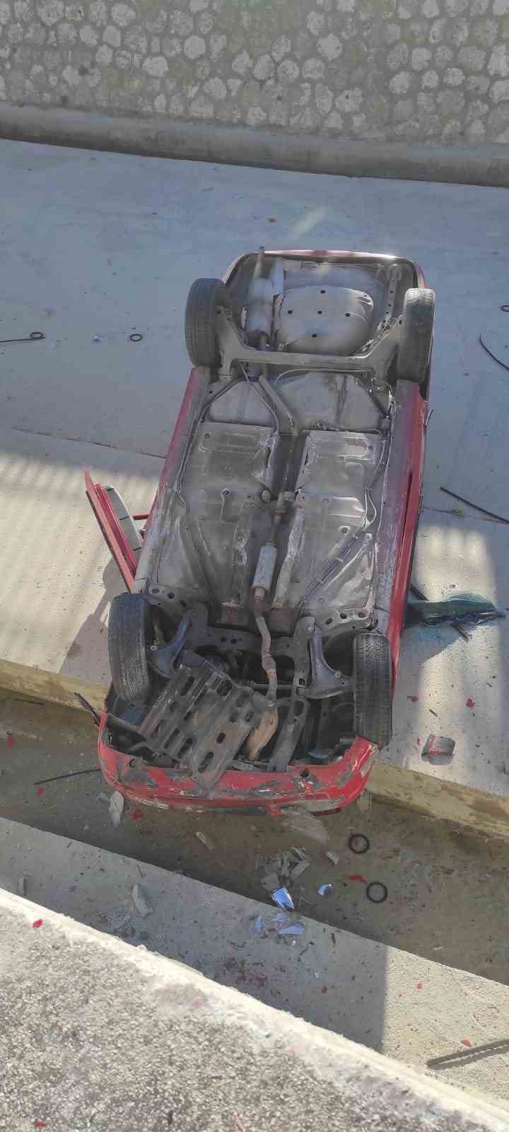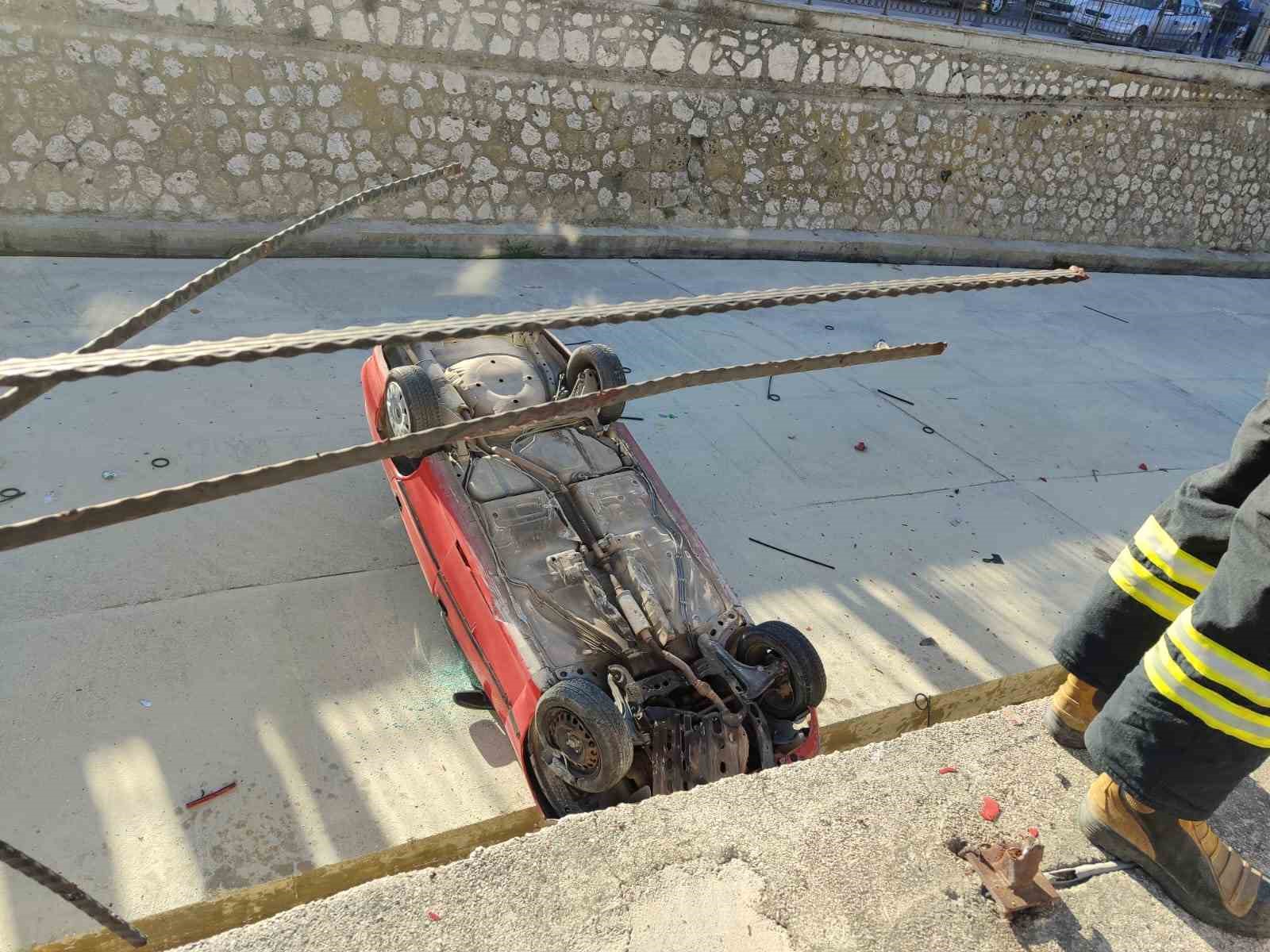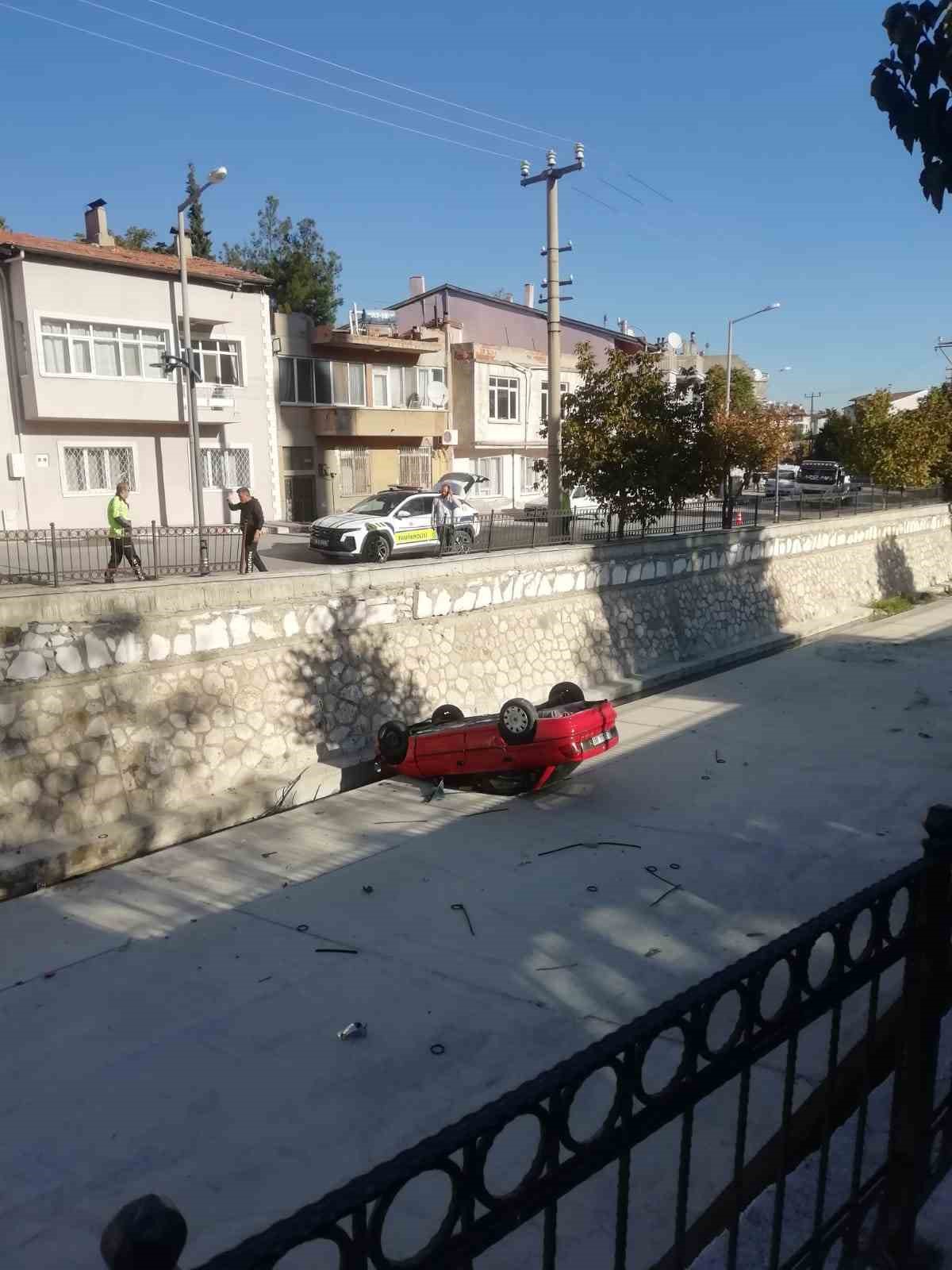 Burdur’da sabah saatlerinde seyir halindeki otomobil kontrolden çıkarak demir bariyerleri aşıp çaya düştü. Ters dönen araçtan kendi imkanlarıyla çıkan sürücü kazayı hafif sıyrıklarla atlattı.