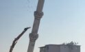 Hasarlı minare iş makinesinin dokunuşuyla yerle bir oldu