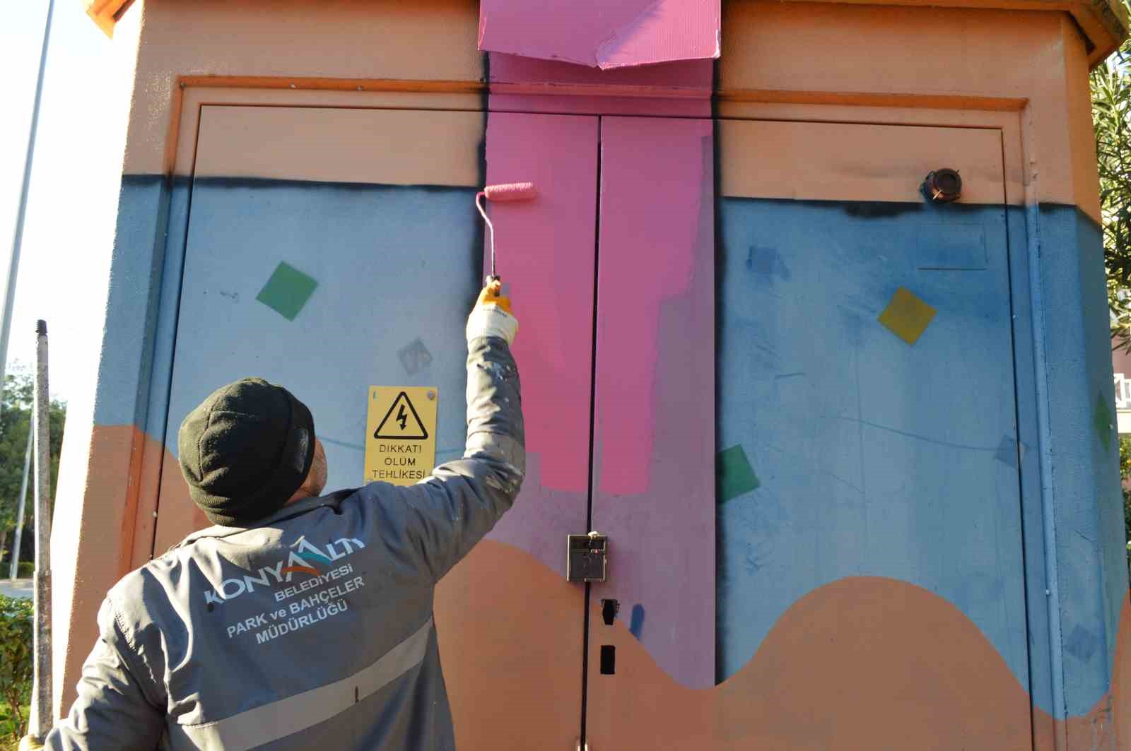 Konyaaltı Belediyesi, şehrin estetiğini iyileştirmek ve kente renk katmak amacıyla elektrik trafolarını, boyama işlemi yaparak sanat eserine dönüştürüyor.