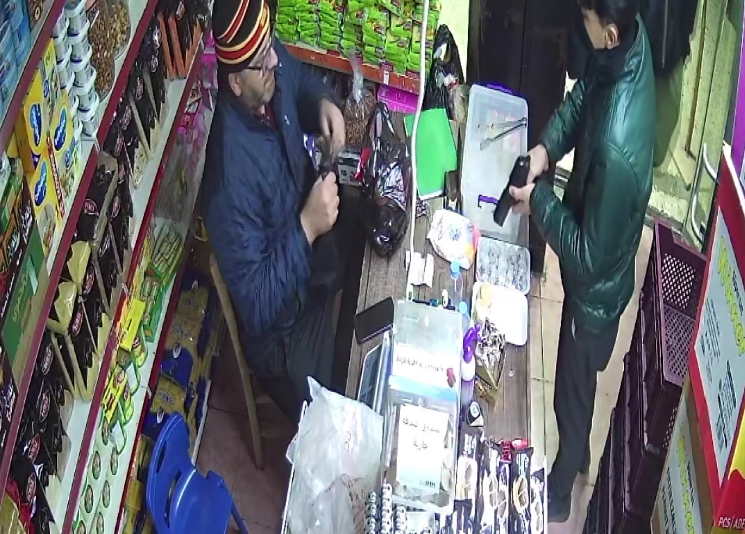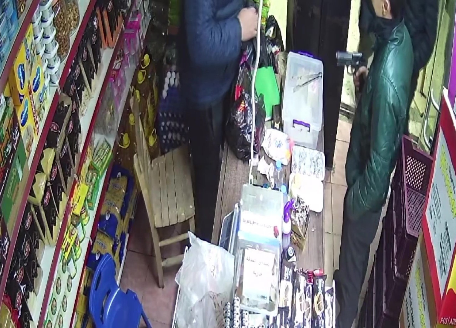 Şüpheliler daha sonra Dumlupınar Mahallesi’nde Zekariya I.’nın (44) bakkalına girdi. Bu sefer gruptan H.C. tabancayı çıkartıp “Bize para lazım, kasadaki paraları ver” dedi. Paniğe kapılan Zekariya I. kasada bulunan 2 bin TL’yi verdi. Parayı alan şüpheliler koşarak bölgeden ayrıldı. Bu anlar da güvenlik kameralarına yansıdı.
