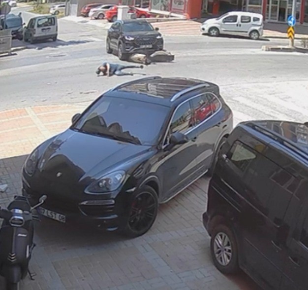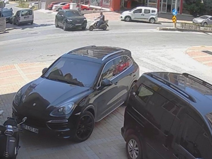 Manavgat’ta ara sokaktan caddeye çıkan cip, motosiklete çarptı. Cipin altında kalan motosikletin ve başını asfalta çarpan motosiklet sürücüsü ölümden döndü. Kaza anı ise güvenlik kamerasına saniye saniye yansıdı.