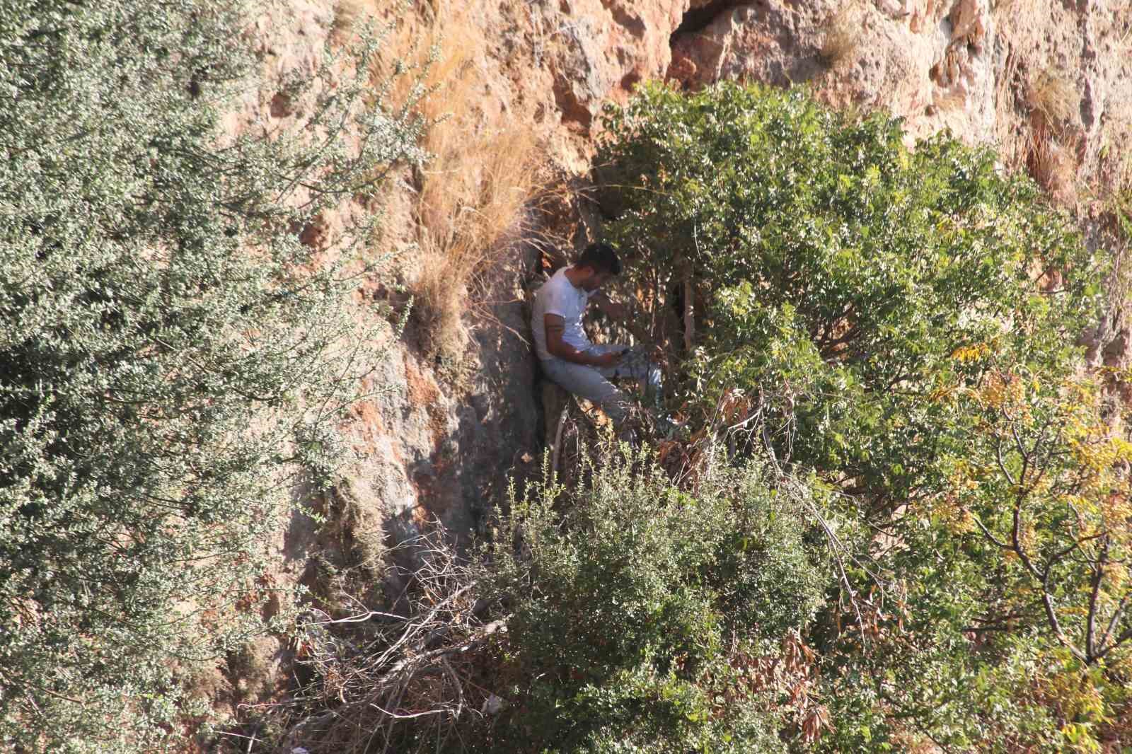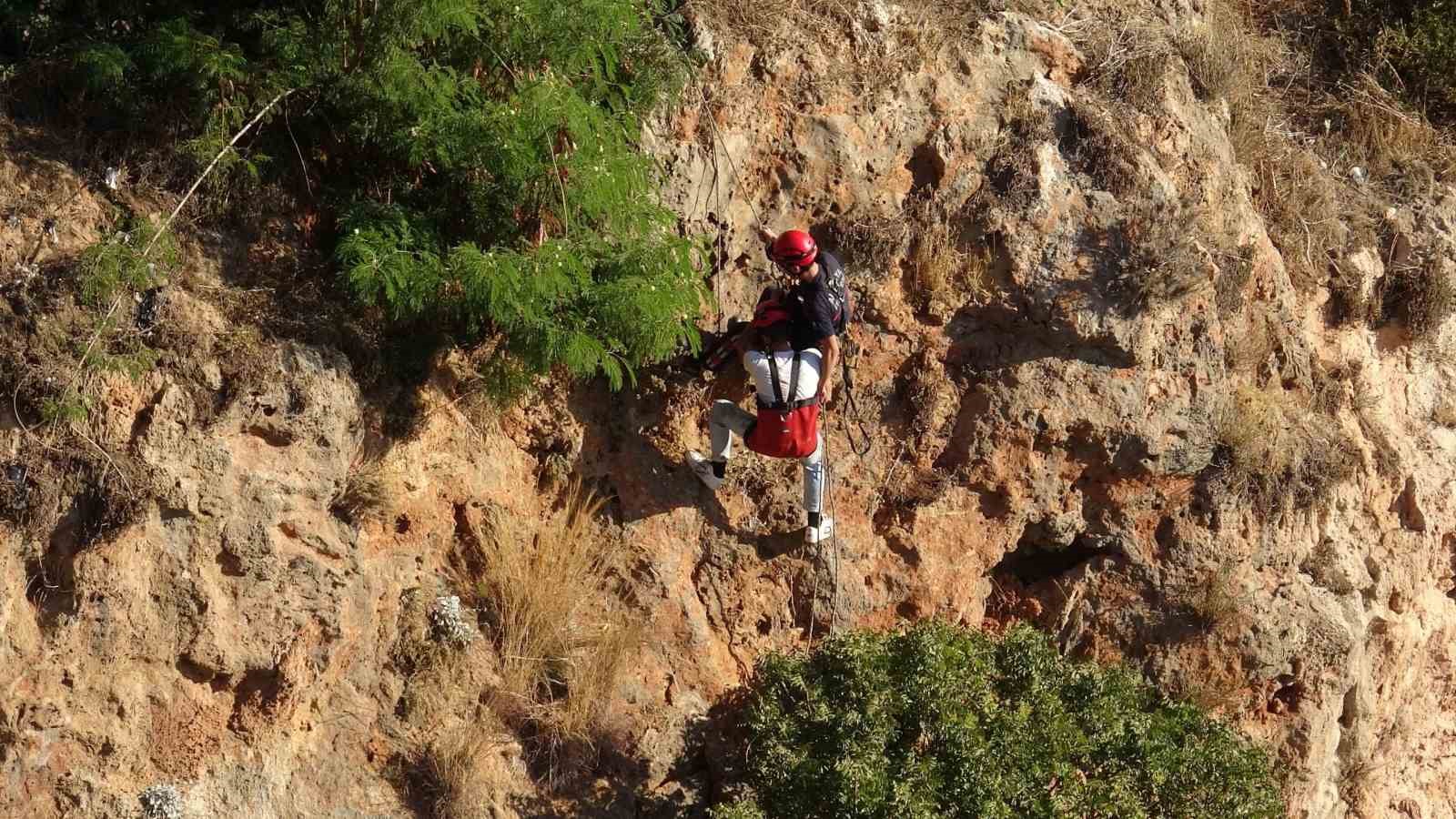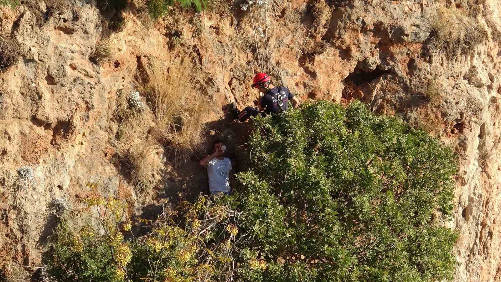 Antalya’da bir şahıs, uygunsuz halde gördüğü kişileri uyarmak için 35 metre yükseklikteki bir uçurumdan kayalıklara indi. Kayalıklarda mahsur kalan ve yardım çığlıkları atan genci itfaiye ekipleri kurtardı. Kurtarıldıktan sonra konuşan genç, “Aşağıda terbiyesiz bir adam vardı, ona ceza keseyim derken yanlışlıkla kendime ceza kestim” dedi.