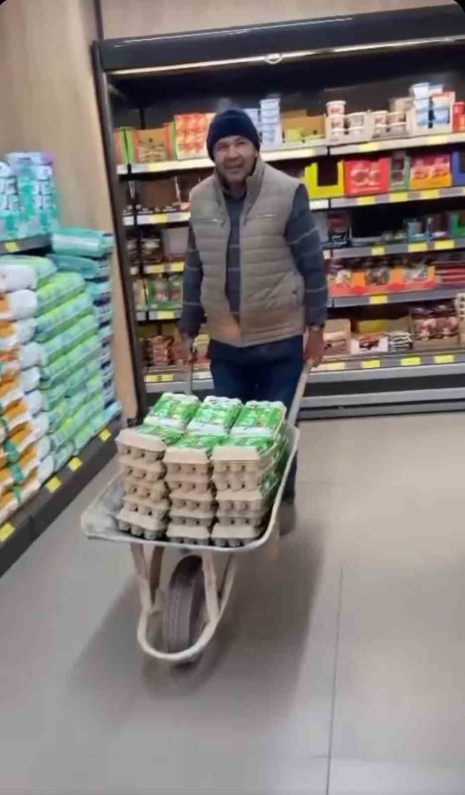 Marketten fazlaca yumurta aldığı esnada taşımakta zorlanmamak için el arabası kullandığını söyleyen Abdullah Çakarlar, “Ben 40 yıldır tostçuluk yapıyorum. Bu işi ve diğer şeyleri severek yapıyorum. Elimden gelen mücadeleyi veriyorum. Ben markette el arabasıyla alışveriş yaparken bir arkadaş ’seni çekebilir miyim’ dedi. Ben de çek dedim. Markette fazla yumurta alınca el arabasıyla götüreyim dedim. Fazla aldığım için el arabasıyla girdim. Devamlı alışveriş yaptığım için markettekiler bana engel olmuyorlar. Normalde elektrikli motosikletle gidiyordum ama fazla yumurtada aldığım ve rahat olsun diye de el arabasıyla gittim. Devamlı gittiğim markete el arabasıyla girince oradaki arkadaş beni videoya çekti” dedi.