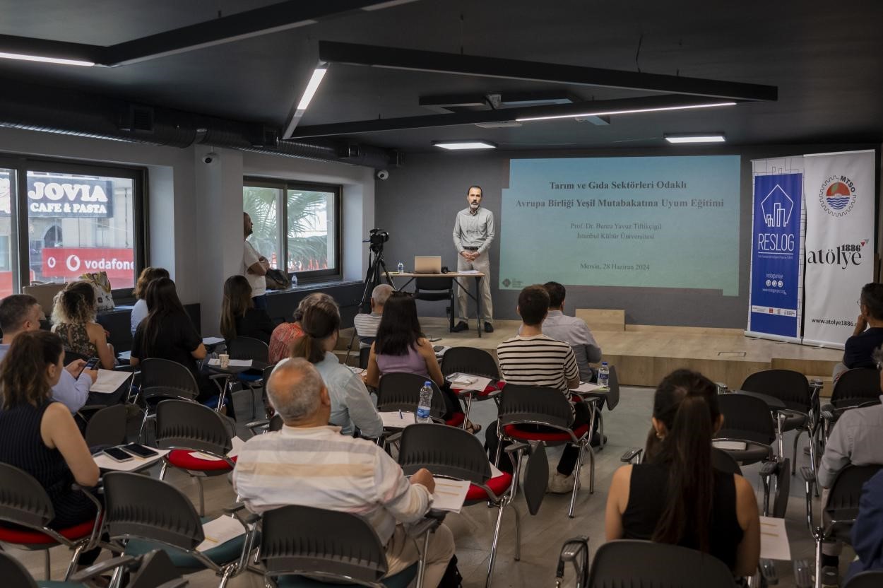 Mersin Yeşil Dönüşüm Merkezinde, iklim krizinden etkilenen tarım ve gıda sektörü temsilcilerine yönelik Tarım ve Gıda Sektörleri Odaklı Avrupa Birliği Yeşil Mutabakatına Uyum Eğitimi düzenlendi.