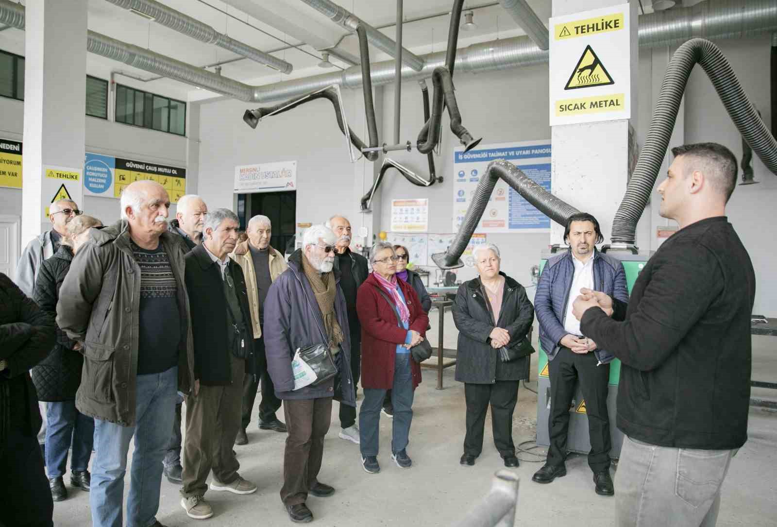 Emekli evi üyelerinden Aysel Türkkan de Tırmıl Mercek Meslek Edindirme ve Eğitim Merkezi hakkında bilgi vererek, “Burada bize önce kaynak yapmayı gösterdiler. Sonra da demir kesimi yaptım. Burada güzel eğitim ve bilgilendirme yapılıyor” dedi.
