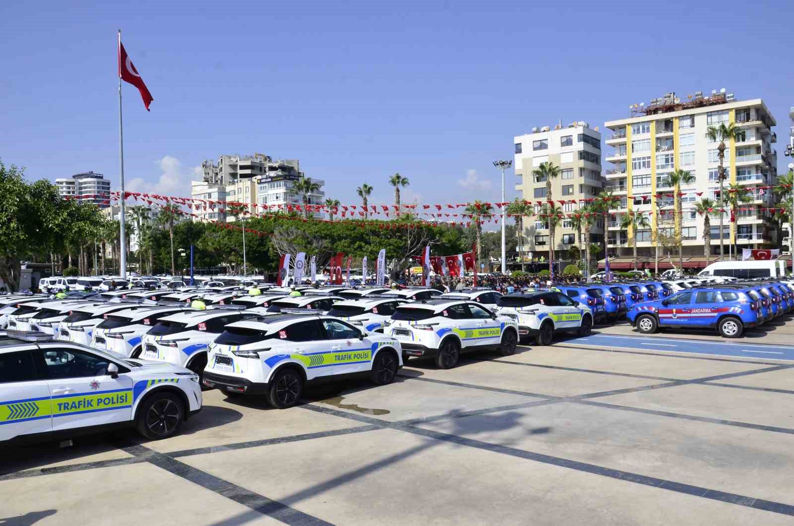 Mersin’de emniyet ve jandarma teşkilatlarına katılan 238 aracın tanıtımı için tören düzenlendi. Vali Ali Hamza Pehlivan, “İmkanlar daha iyi noktalara geldikçe hem personel sayısı, hem araç, gereç, donanım; bunlar hizmetlere de olumlu şekilde yansıyor” dedi.