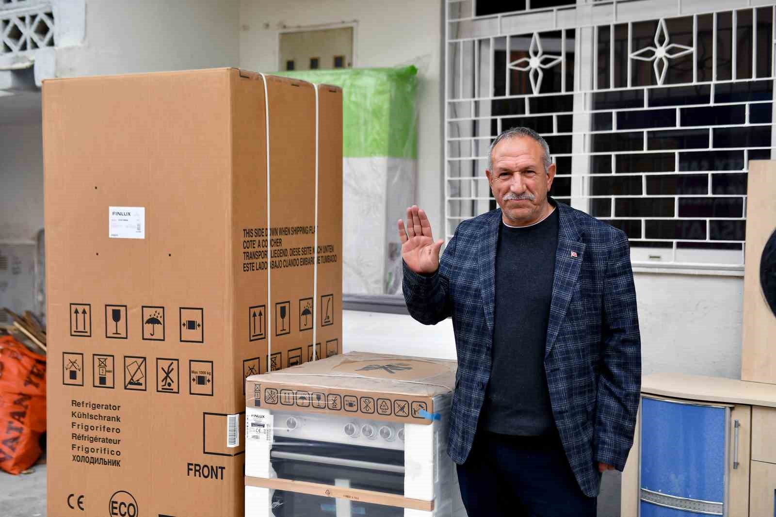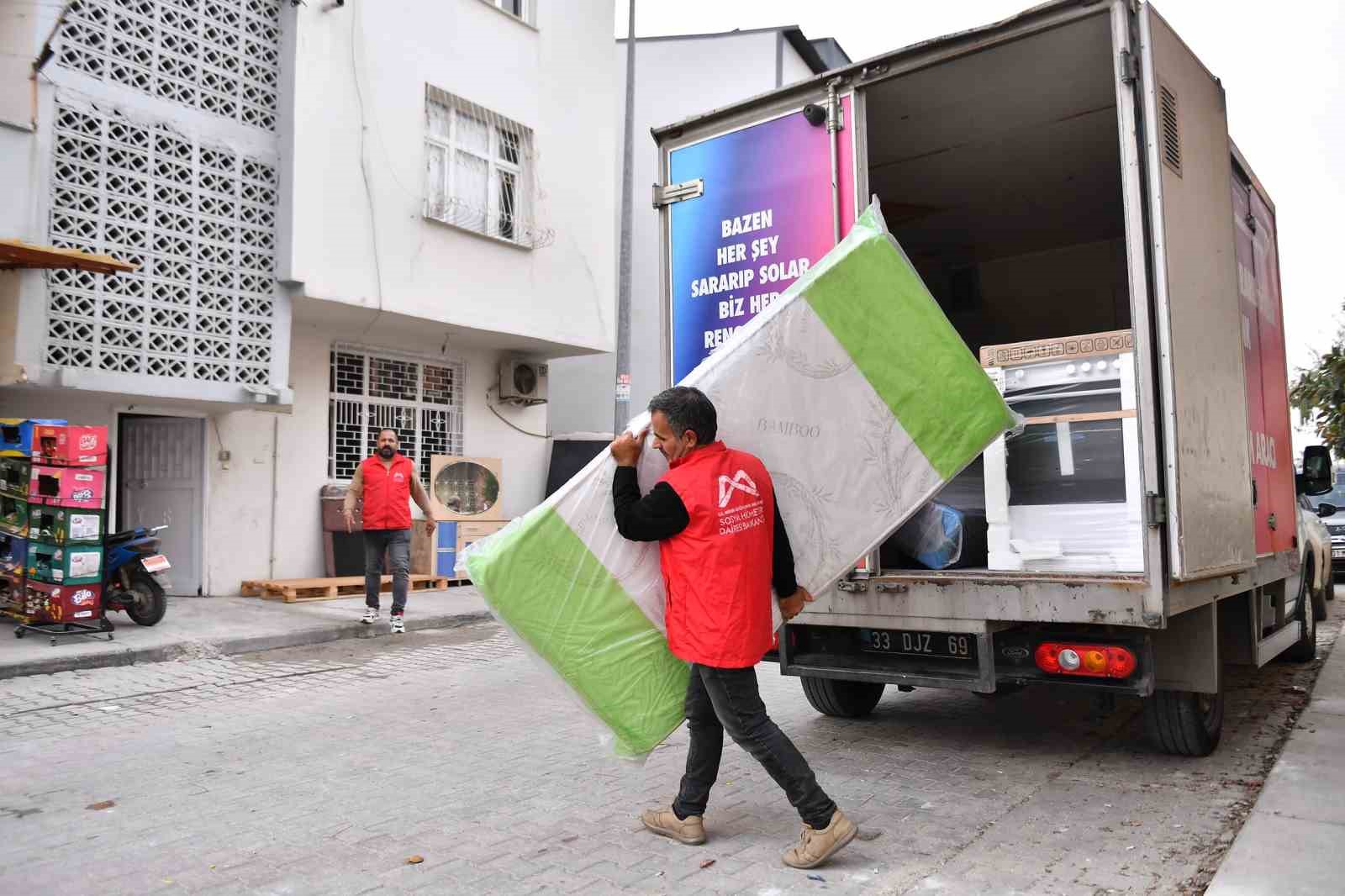 Mersin Büyükşehir Belediyesi, farklı sebeplerle evi yanan ve eşyaları kullanılmayacak duruma gelen vatandaşlara destek olmaya devam ediyor. ‘Bazen her şey sararıp solar, biz hep rengarenk’ sloganıyla hareket eden Büyükşehir Belediyesi, evi yanan ve eşyaları zarar gören vatandaşların buzdolabı, çamaşır makinesi, fırınlı ocak, bazalı yatak ve çekyat gibi eşyalarını karşılıyor.