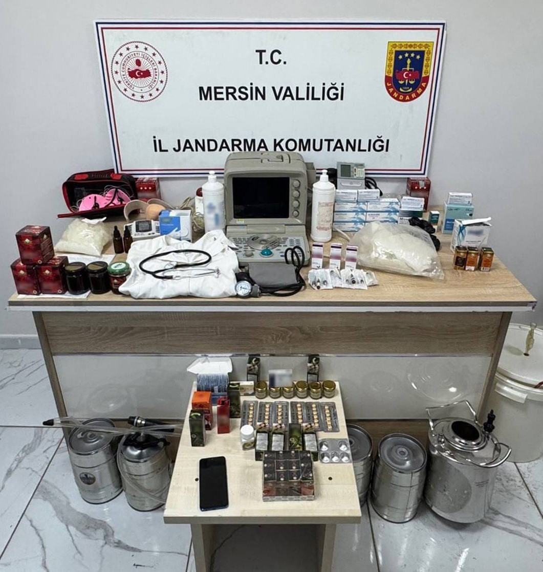 Mersin’in Erdemli ilçesinde jandarma ekipleri, yeterlilik belgesi olmadan hasta muayene eden yabancı uyruklu doktor ile cinsel içerikli ilaç imal ve ticareti yapan eşini yakaladı.