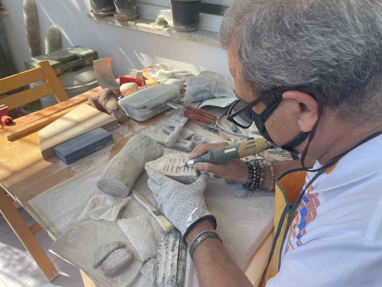 İlk başlarda bu hobiye meyve bıçağı ile başladığını, daha sonra makineler aldığını söyleyen Fatih Güvercin, “Bu ahşap ve taş işlemelerine hobi olarak 1990 yılında başladım. O dönemde arkadaşlarla bir doğa gezisi yapıyorduk. Arkadaşlar bir taş buldu, dalga geçtiler yani şakalaştılar kendileri aralarında ben aldım o taşı baktım güzel, hoşuma gitti. Elime alıp taşı işledim insan figürü yaptım öyle başladık artık bu işe, hobi olarak. Tabii başladıktan sonra ilk meyve bıçağıyla önce başladım. Meyve bıçağından sonra daha böyle keskin, daha güzel bir bıçak aldım, daha sonra freze makinesi, el freze, el taşlama denilen bu hobi makinelerinden aldım. Tabii bunları alınca taş işlemek için ayrı frezeler, ağaç işlemek için, oymak için ya da ayrı frezeler aldım. Profesyonelleştik şu anda arada zaman buldukça yaparken birikmeye başladı tabii ki yaptıklarımız. Emekli olunca da daha da yoğunlaştık bu hobimize taş olsun, ahşap olsun bunları yapıp sosyal medyaya yüklüyorum. Kesinlikle satmıyorum şu anda yani talepte çok aslında satar mısın diyenler de var ama ben satmıyorum. Arkadaşlara hediye ediyorum bazen kendi yaptığım ürünlerde” diye konuştu.