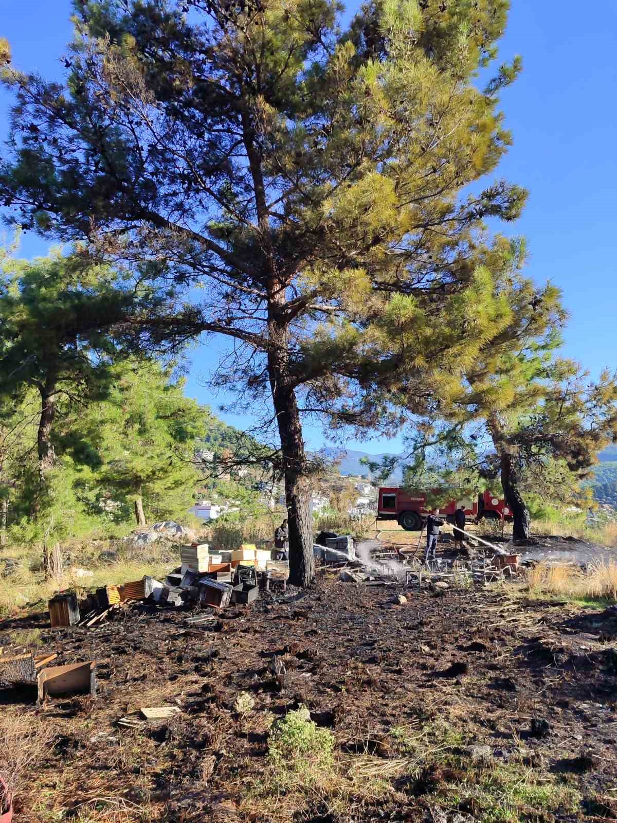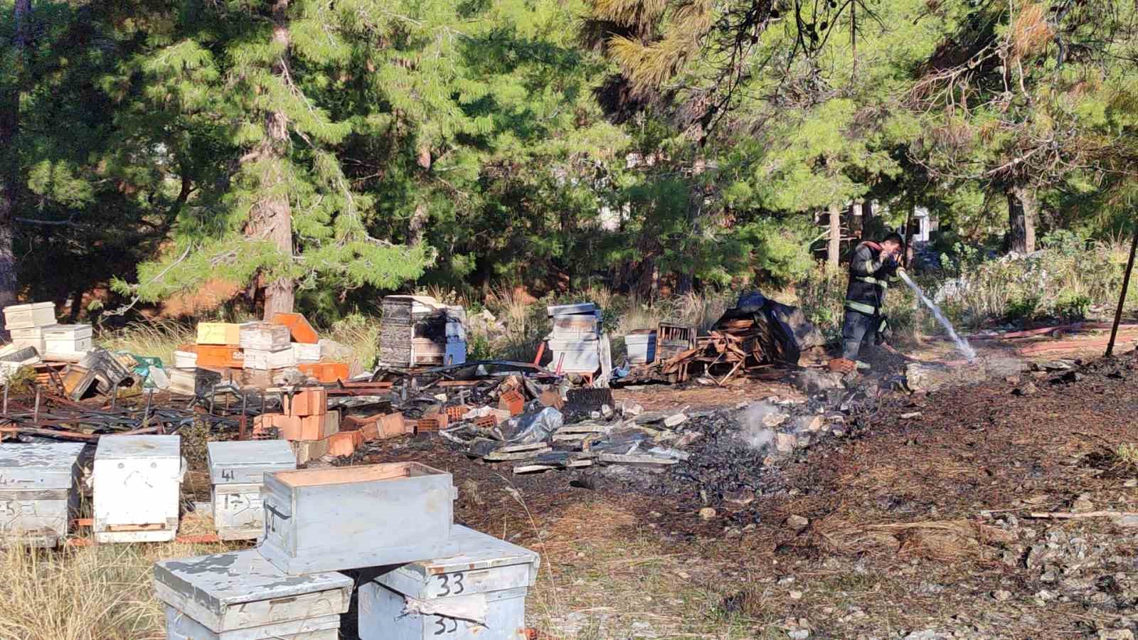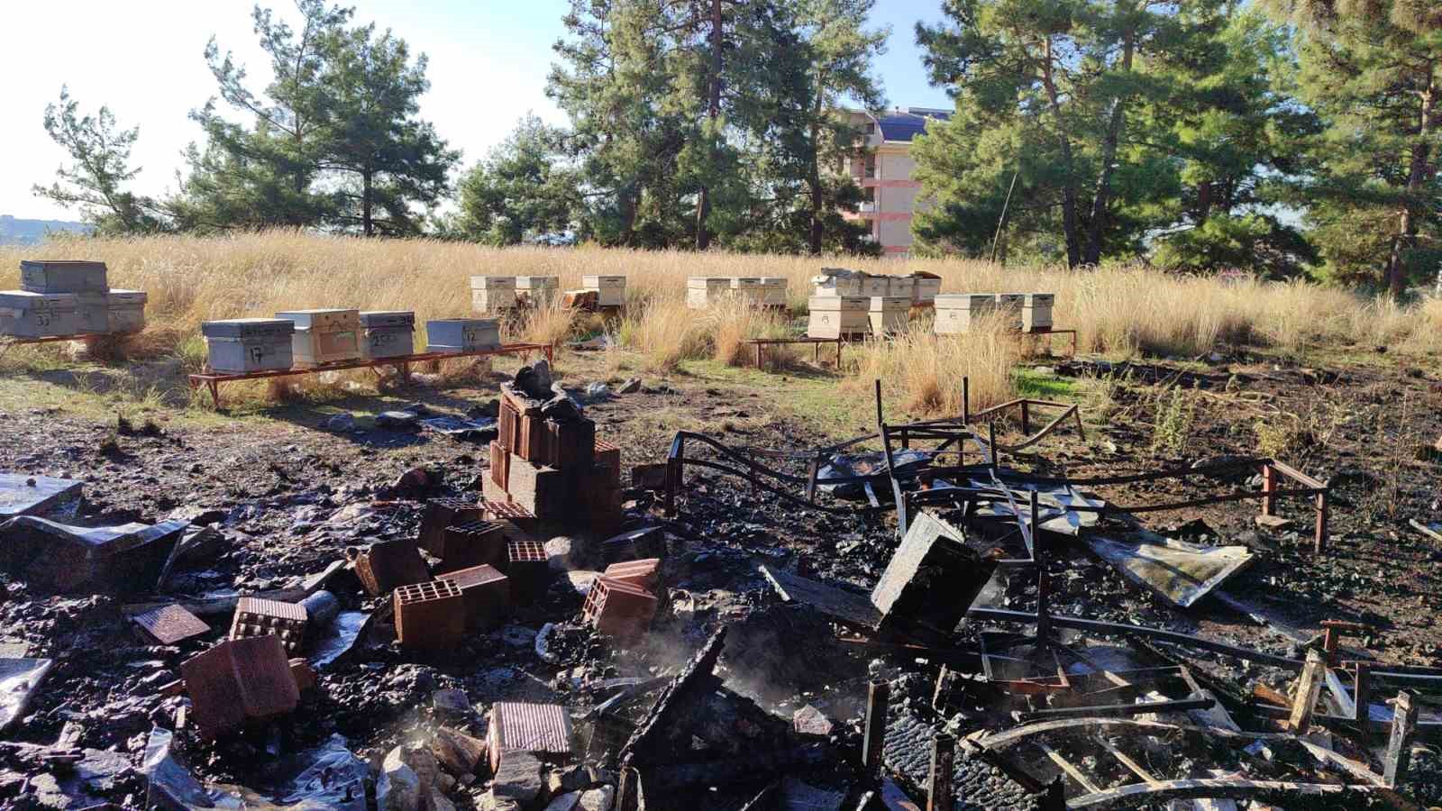 Antalya’nın Alanya ilçesinde mezarlıkta çıkan yangında orman içerisinde bulunan arı kovanları zarar gördü.