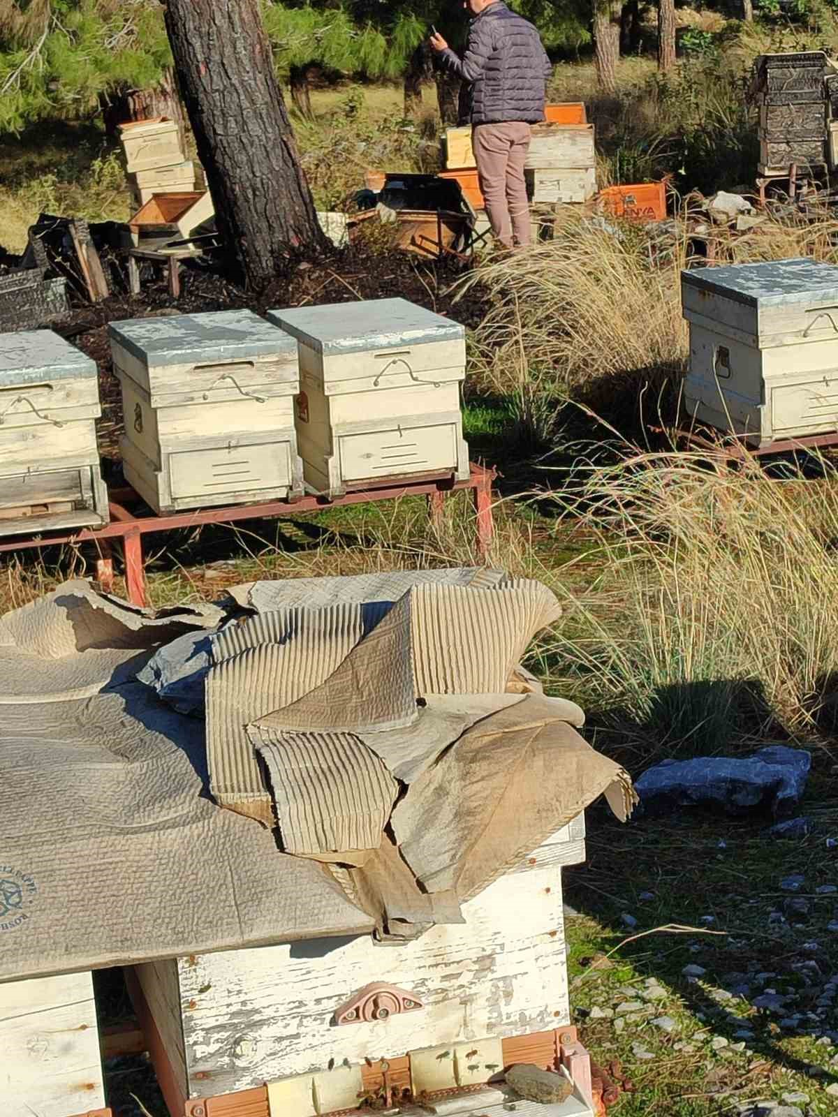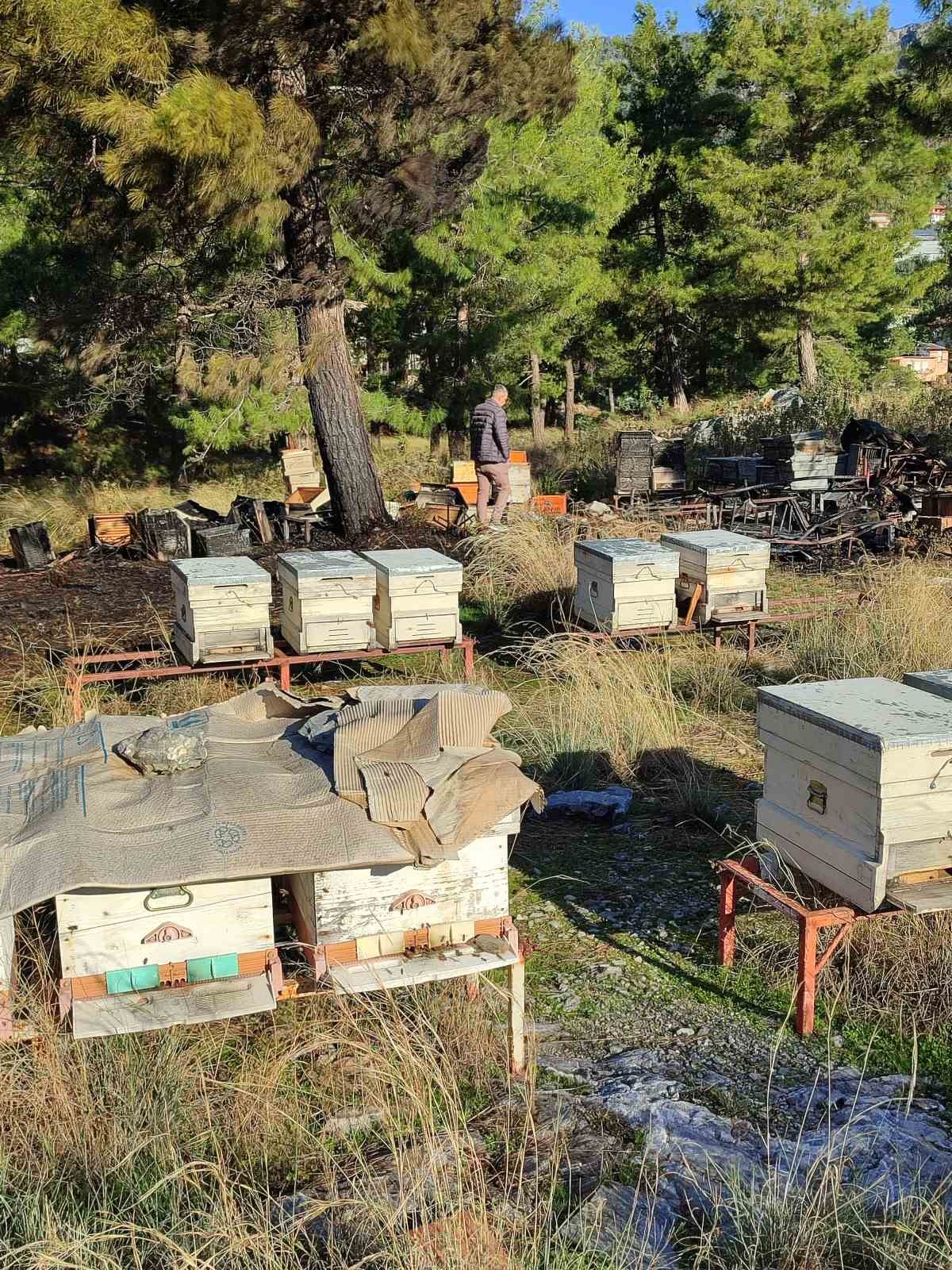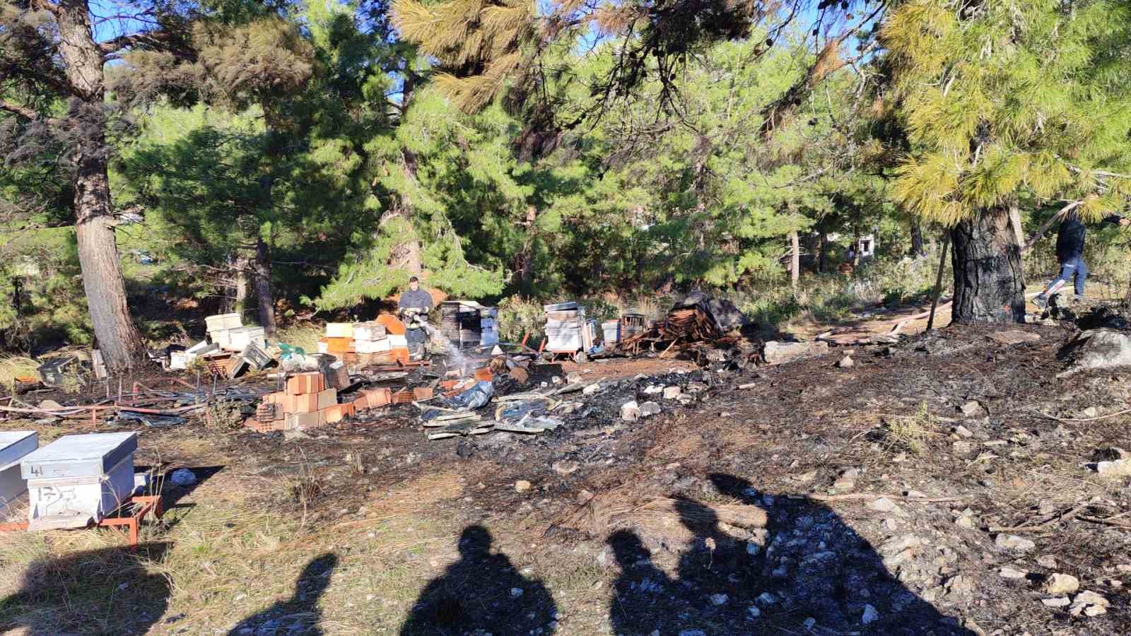 Antalya’nın Alanya ilçesinde mezarlıkta çıkan yangında orman içerisinde bulunan arı kovanları zarar gördü.