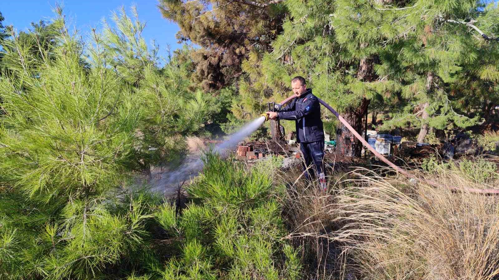 Yangın, 10.00 sıralarında Alanya’nın Çıplaklı Mahallesi yüksek harman mezarlığı içerisinde bulunan ormanlık alanda çıktı. Henüz belirlenemeyen nedenle çıkan yangında orman içerisinde bulunan 15 kovandaki arılar telef olurken, 25 arı kovanı ise yangından etkilenmedi. Mezarlık içerinde bulunan 2 çam ağacı, çıkan yangında zarar gördü. Mezarlık içerisinden dumanları gören çevredeki vatandaşlar durumu itfaiye ekiplerine bildirdi. Olay yerine gelen itfaiye ekipleri kısa sürede yangını söndürdü.