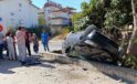 İstinat duvarına çarptı, bahçeye uçup ters döndü