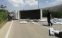 İnşaat malzemesi yüklü kamyonet yan yattı: 1 yaralı