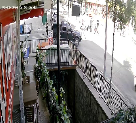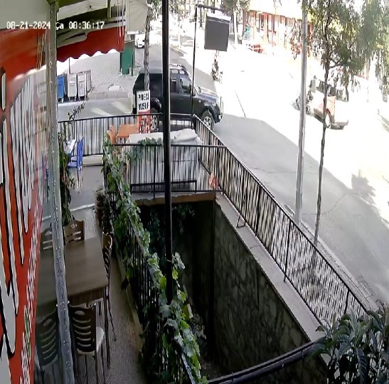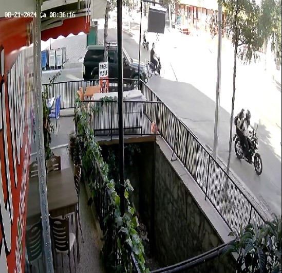 Kaza anı çevrede bulunan güvenlik kamerasına anbean yansıdı. Görüntülerde Motosiklet sürücüsünün ana caddeye çıktığı anda cadde üzerinde seyir halinde olan hafif ticari araçla çarpıştığı anlar yer aldı. Çarpışmanın şiddeti ile motosiklet sürücüsünün savrularak yere düştüğü, çevrede bulunan vatandaşların yaralı sürücüye yardıma koştuğu anlar kameralarca kaydedildi.