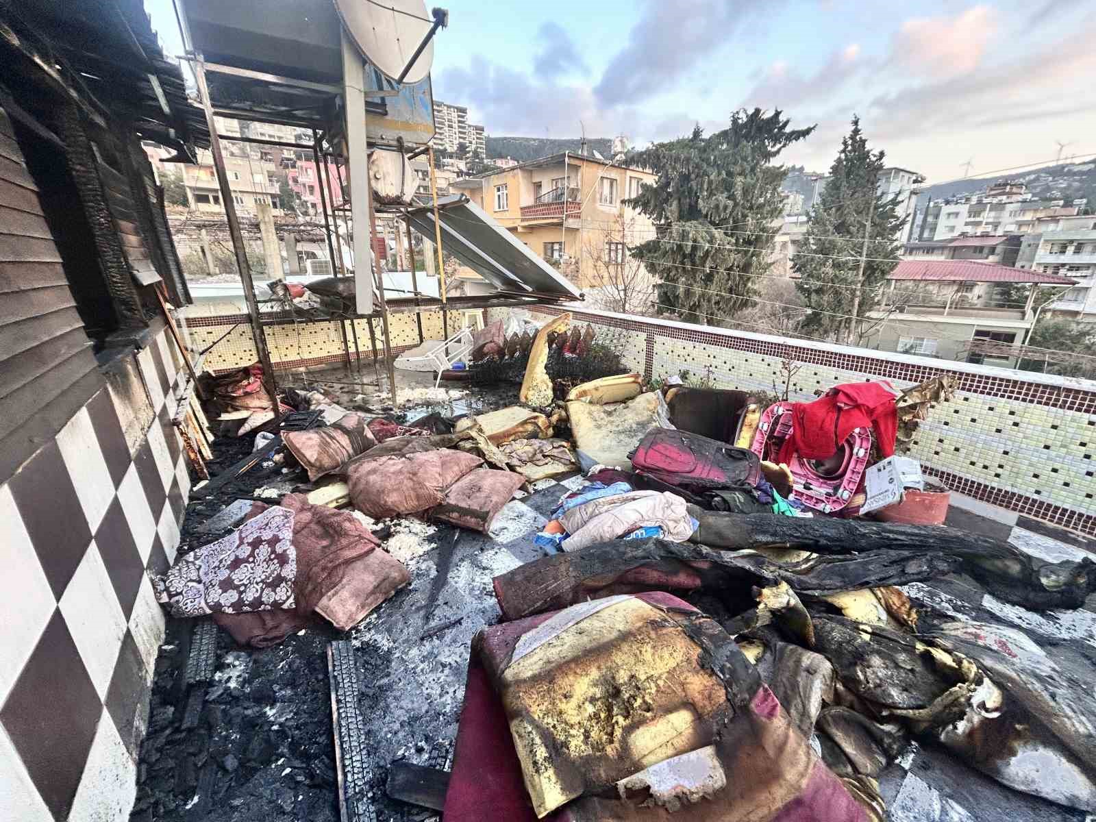 Hatay’da alevlere teslim olan müstakil evin çatkı katı kullanılmaz hale geldi.