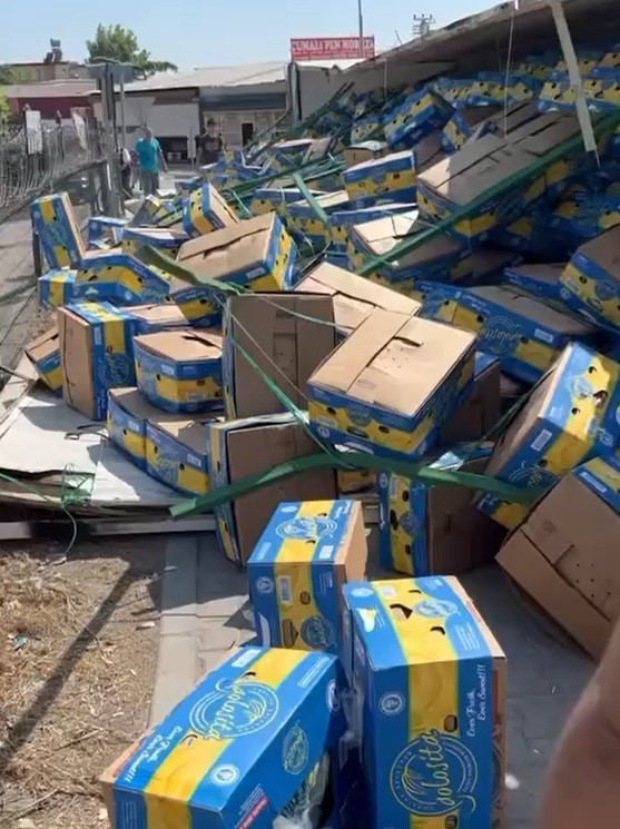 Mersin’in Tarsus ilçesinde muz yüklü tır devrildi. Kazada sürücü hafif yaralandı.