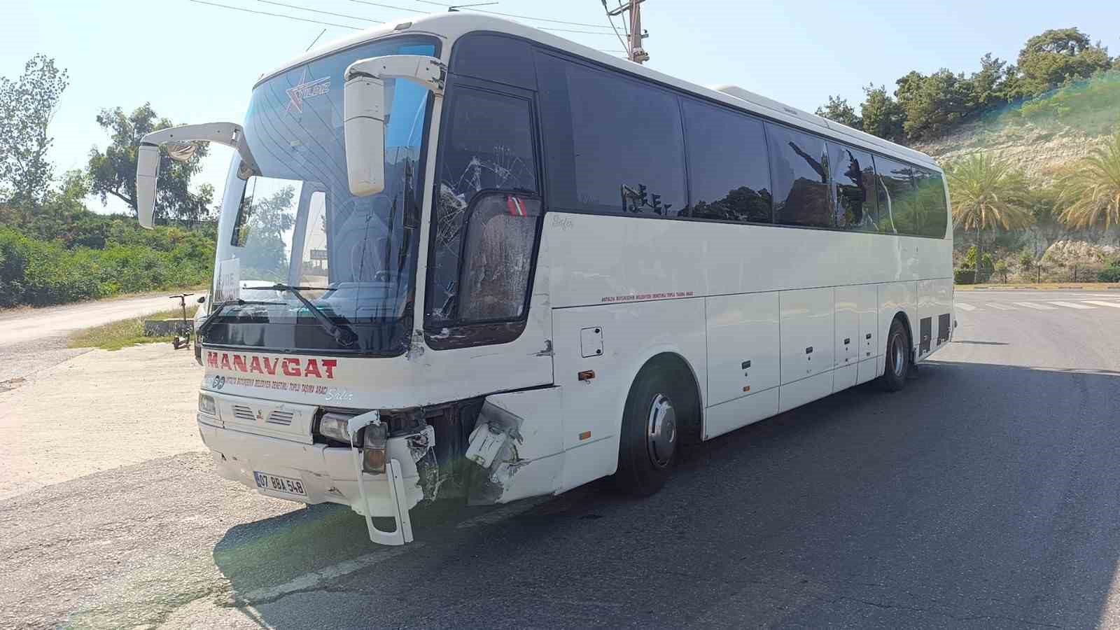Antalya’nın Manavgat ilçesinde seyir halindeki nakliye kamyonu kavşak sisteminde otobüs ile çarpıştı. Kazada otobüste yolcu olarak 1 kişi hafif yaralandı.
