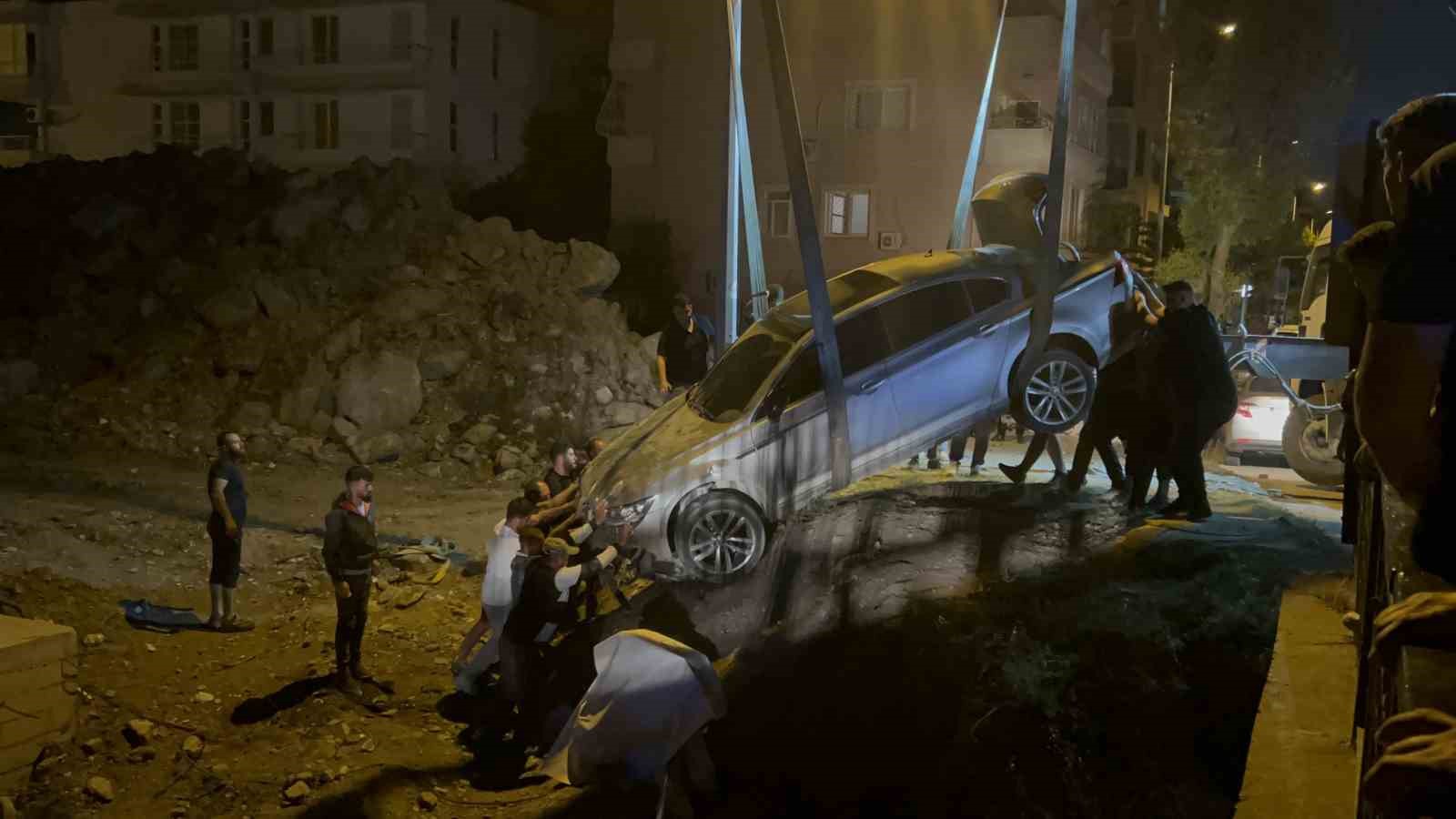 Hatay’da navigasyon takibiyle yolculuk yapan sürücünün kullandığı otomobil, yıkımı yapılan binanın boş arazisine uçtu. Kazada hasar alan araçtaki 5 kişinin burnu bile kanamadı.