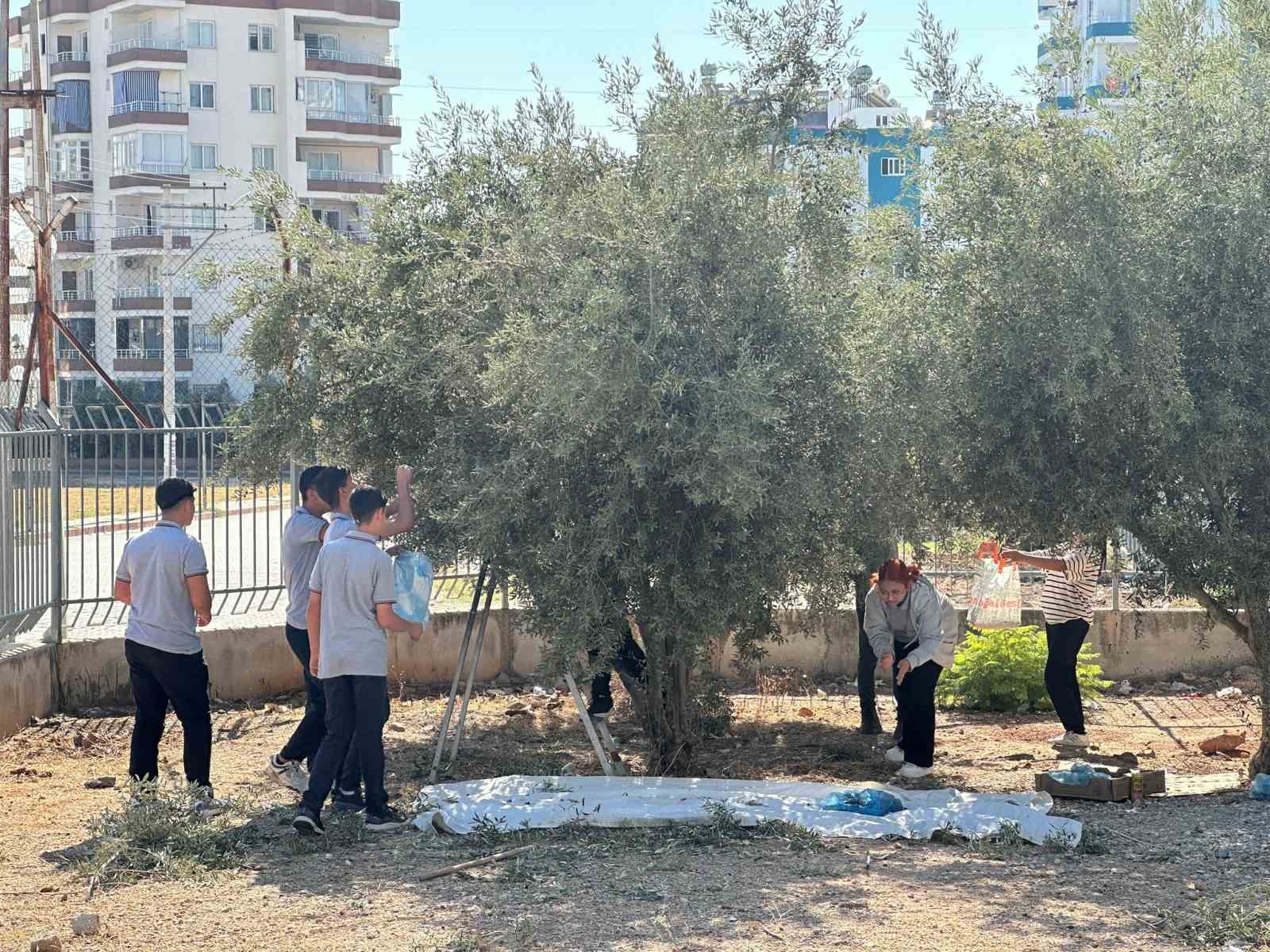 Mersin’de bir lisenin bahçesinde bulunan zeytin ağaçları öğrenciler tarafından toplandı. Hasat edilen zeytinlerin geliri, ihtiyaç sahibi öğrencilerin ihtiyaçlarının giderilmesinde kullanılacak.