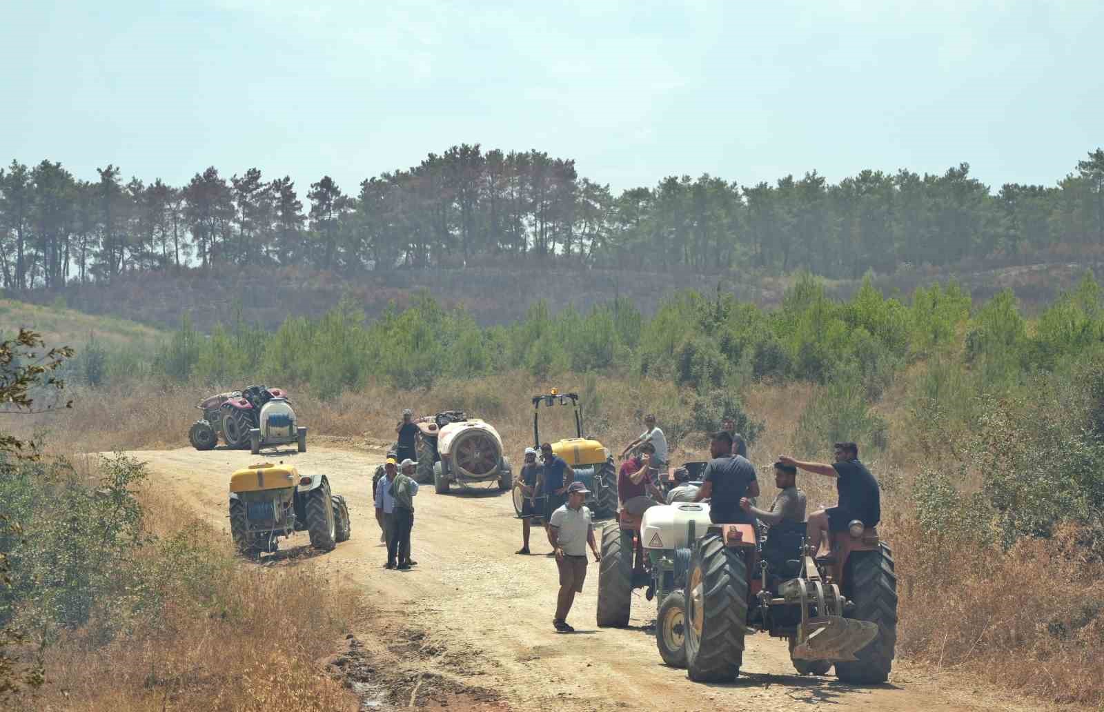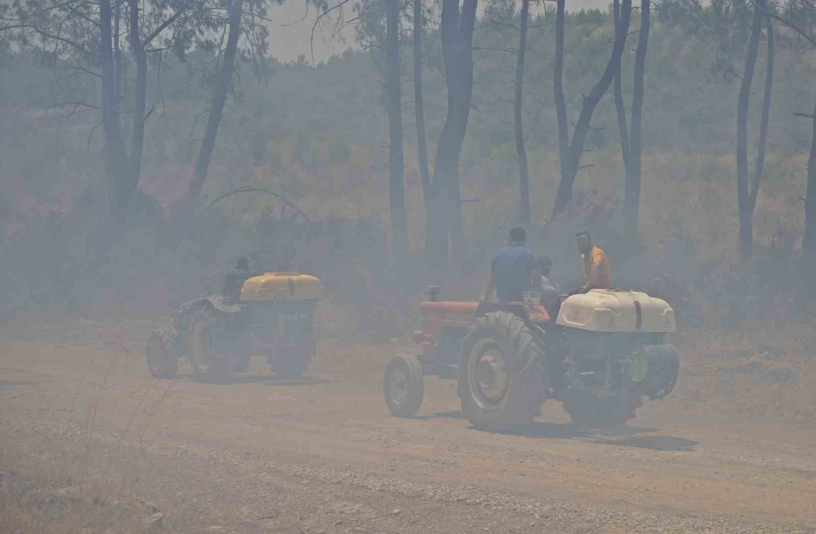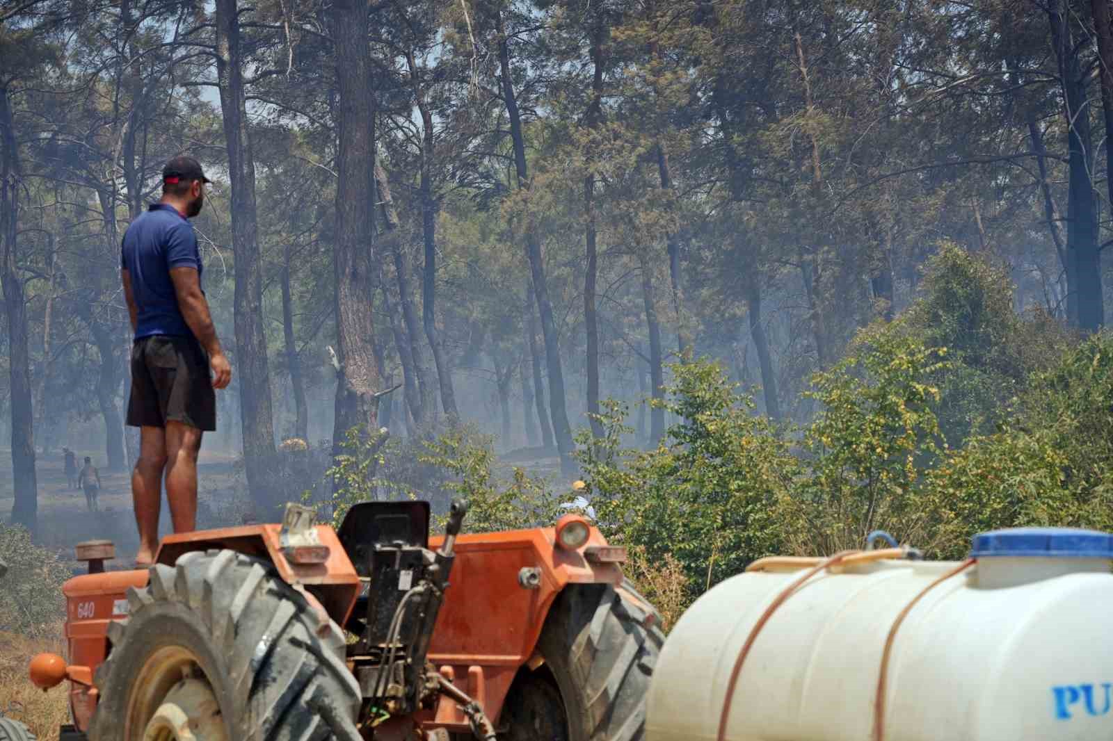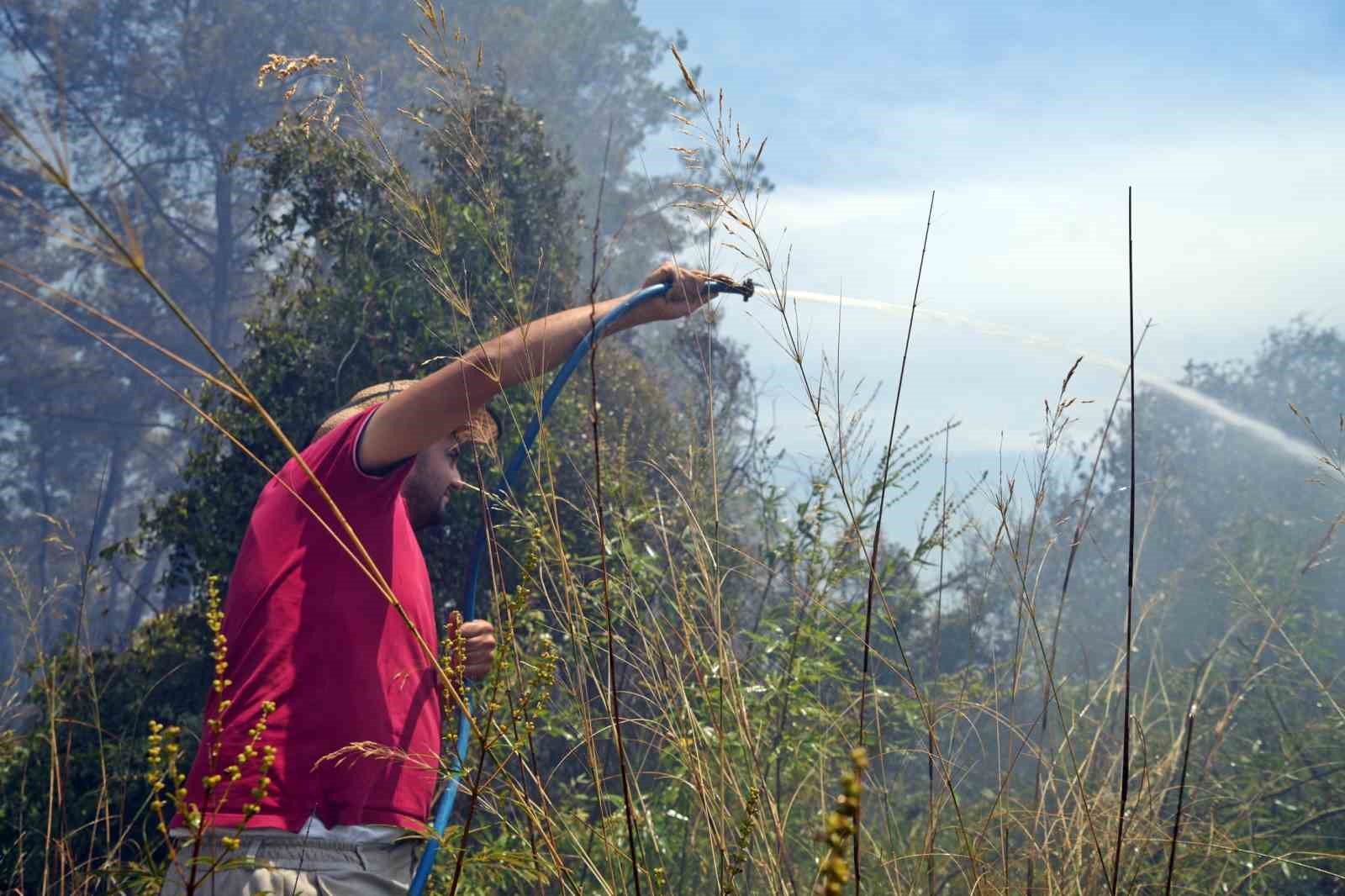 Traktörle bölgeye gelen 69 yaşındaki Muharrem Sarı ise “Motorunu, traktörünü, balta, kürek ne varsa alan gelen herkes buraya koşup geldi. Havadan, karadan helikopterle müdahale geldi. Şu an da söndürdük. Yine de tedbirimizi alıyoruz. Vatandaşlarımız da ateş atan yerleri hemen söndürdüler. Bunu yapmasaydık yangın devam edecekti. Bizim de tankerlerimizde 400 litrelik su var. Onlarla müdahale ettik. Burada bekleme sebebimiz yangın ilerlerse hızlı bir müdahale gerçekleştirmek” diye konuştu.