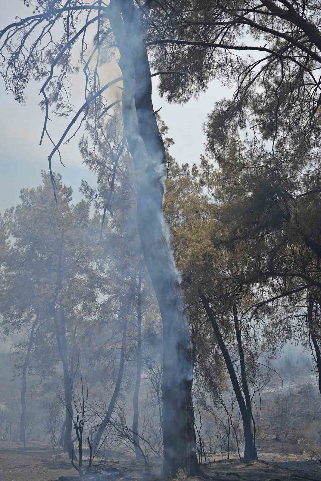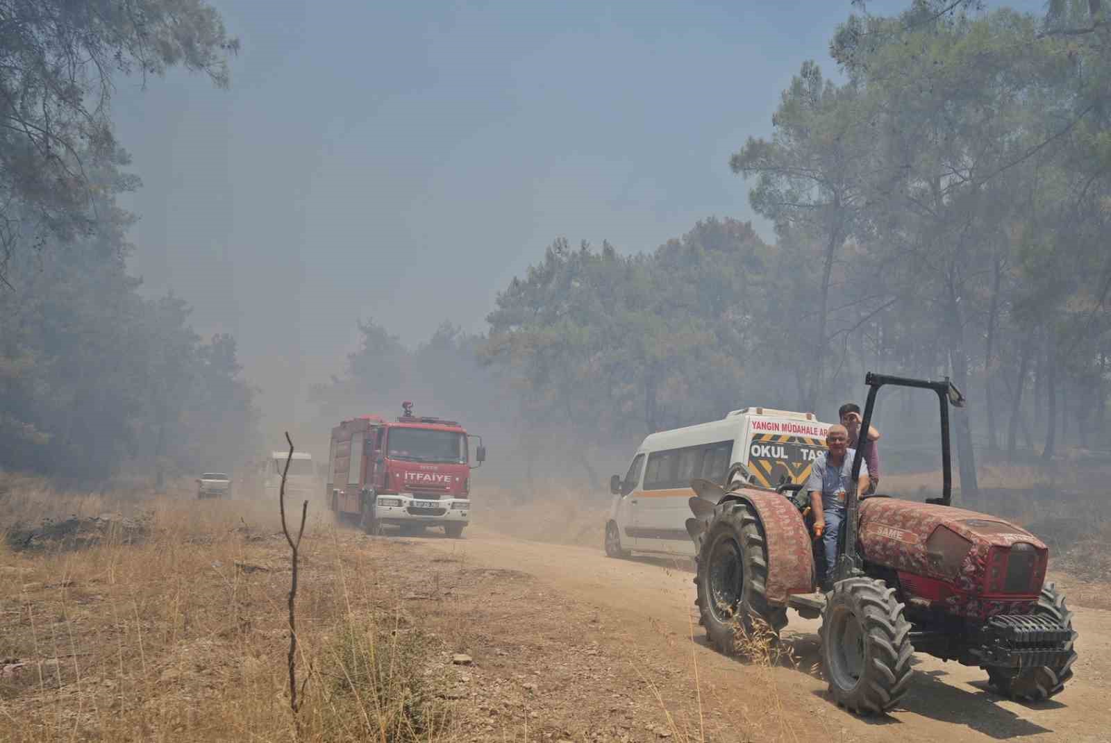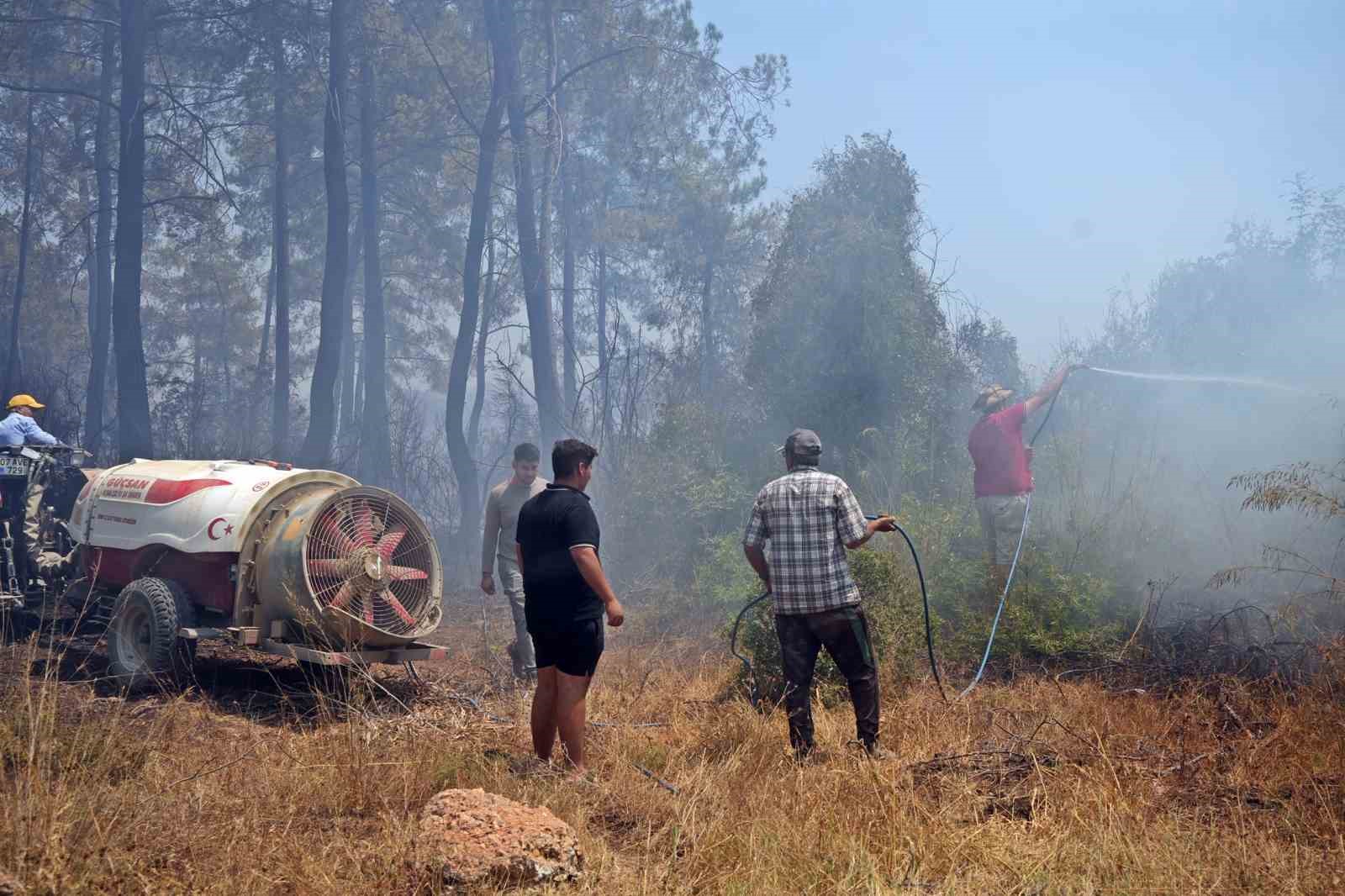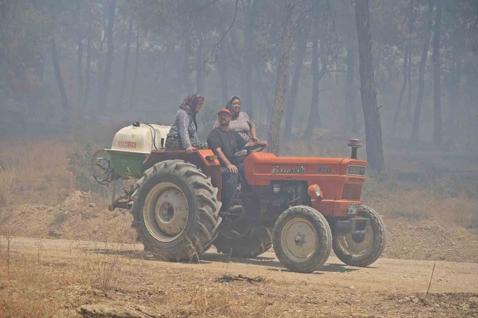 Traktörle bölgeye gelen 69 yaşındaki Muharrem Sarı ise “Motorunu, traktörünü, balta, kürek ne varsa alan gelen herkes buraya koşup geldi. Havadan, karadan helikopterle müdahale geldi. Şu an da söndürdük. Yine de tedbirimizi alıyoruz. Vatandaşlarımız da ateş atan yerleri hemen söndürdüler. Bunu yapmasaydık yangın devam edecekti. Bizim de tankerlerimizde 400 litrelik su var. Onlarla müdahale ettik. Burada bekleme sebebimiz yangın ilerlerse hızlı bir müdahale gerçekleştirmek” diye konuştu.