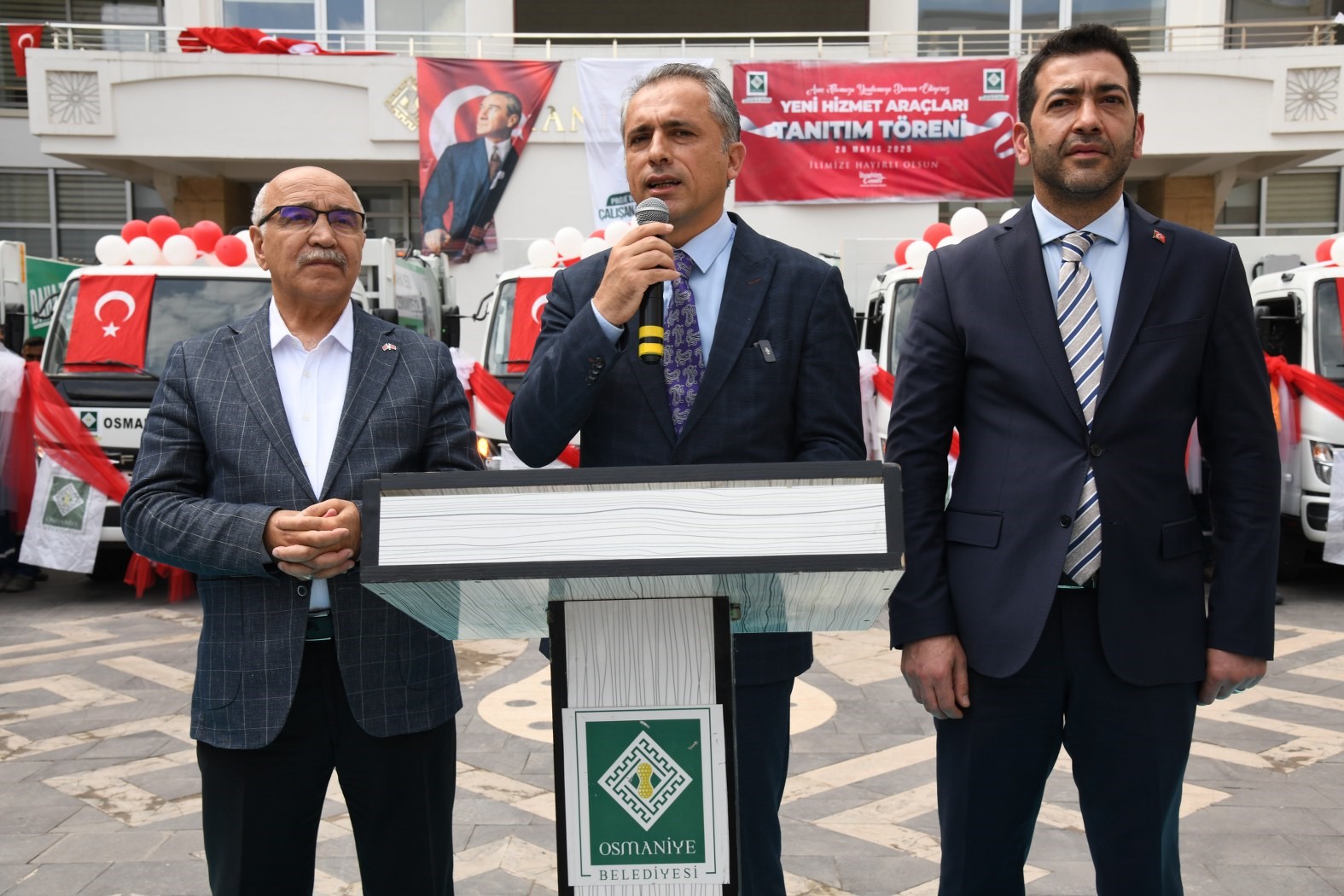 Kademe Tesisleri’nden Atatürk Caddesi üzerinden konvoyla getirilen araçlar, Belediye Hizmet Binası bahçesinde düzenlenen törenle hizmete alındı. Törenin ardından kesilen kurdeleyle araçlar resmi olarak Osmaniye Belediyesi envanterine dahil edildi. Yeni araçların 10’u Temizlik İşleri Müdürlüğünde, 2 damperli kamyon ise Fen İşleri Müdürlüğünde hizmet verecek.