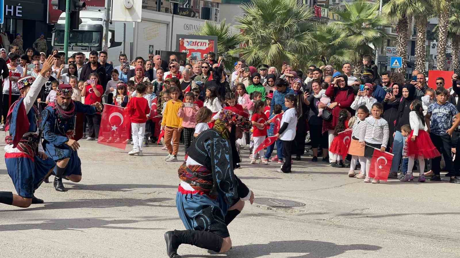 Osmaniye Devlet Bahçeli Bulvarı’nda düzenlenen törene Vali Erdinç Yılmaz, Osmaniye Milletvekili Seydi Gülsoy, Garnizon Komutanı ve 12’nci Komando Tugay Komutanı Tuğgeneral Ahmet Burak Yürüten, Belediye Başkanı İbrahim Çenet, kamu kurum ve kuruluşları il müdürleri, sivil toplum kuruluşları temsilcileri, siyasi parti temsilcileri ve vatandaşlar katıldı. Osmaniye Belediyesi Mehter Takımı gösterisiyle başlayan program zeybek gösterisi, bayrak gösterisi ve İl Jandarma Komutanlığı Narkotik Köpek gösterisiyle son buldu. Kutlamalara katılan Vatandaşlar askerler yoğun ilgi göstererek, birlikte hatıra fotoğrafı çektirdi.