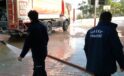 Hatay’da itfaiye ekipleri okul bahçesini çamurdan arındırdı