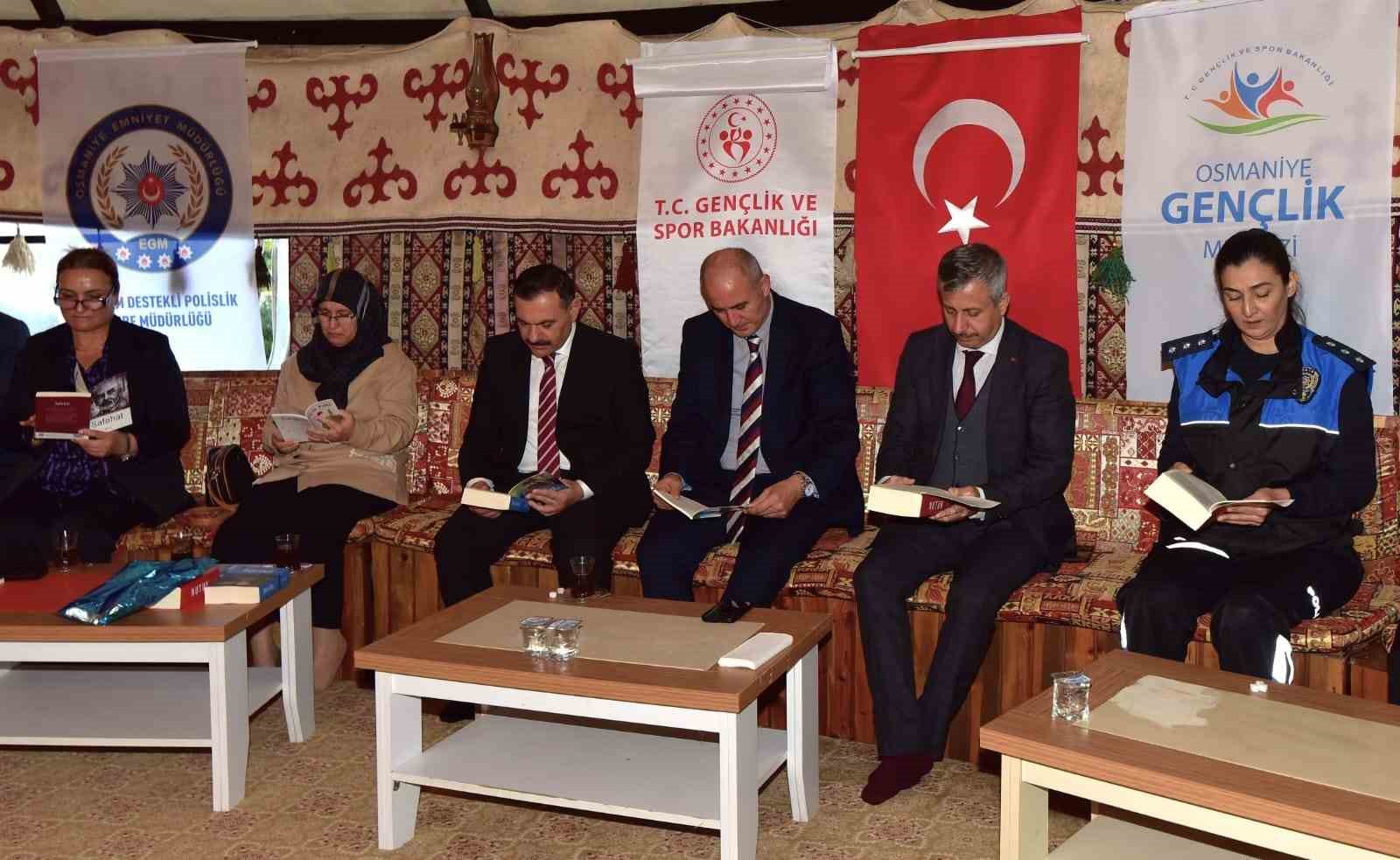 Osmaniye Korkut Ata Üniversitesi (OKÜ) Genç Ofis Otağı’nda düzenlenen kitap okuma etkinliği, dezavantajlı durumdaki çocuk ve gençlerin sosyal gelişimlerine destek olmak ve okuma alışkanlıklarını teşvik etmek amacıyla hayata geçirildi. Etkinliğe, Vali Yardımcısı Hakan Yavuz Erdoğan, İl Emniyet Müdürü Mehmet Sarıbuva ve Gençlik ve Spor İl Müdürü Yusuf Çebi katıldı. Öğrencilere kitaplar protokol üyeleri tarafından hediye edildi. Ardından katılımcılar hep birlikte kitap okuma etkinliğine katılarak kitapların etkileyici dünyasında keyifli bir yolculuk yaptı.