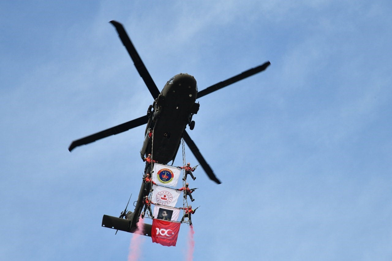 Jandarma, helikopterle “üzüm salkımı” gösterisi yaptı