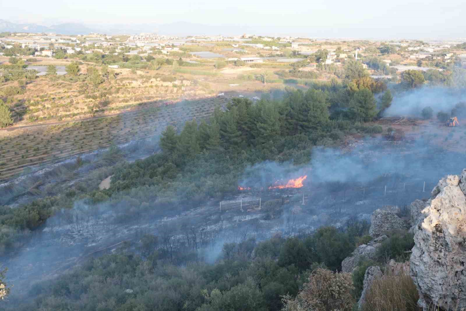 Yangın, saat 16.00 sıralarında Antalya’nın Aksu ilçesi Altıntaş Mahallesi’nde meydana geldi. Şiddetli rüzgar nedeniyle elektrik tellerinden çıkan kıvılcımlar boş arazideki otları tutuşturdu. İhbarla olay yerine gelen itfaiye ekipleri yangın alanına giriş yapamadığı için müdahalede bulunamadı. Şiddetli rüzgarın da etkisiyle alevler kısa sürede yayıldı. Yangın kısa sürede yaklaşık 40 metrelik kayalıkları aşarak üst kısımda bulunan inşaat alanına sıçradı.