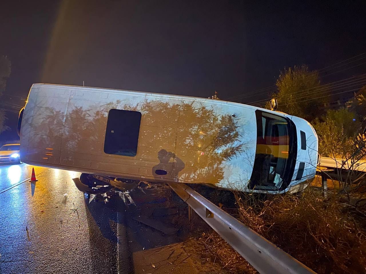 Kaza, akşam saatlerinde Cumalı Mahallesi D400 karayolu üzerinde meydana geldi. Edinilen bilgiye göre, Serik’ten Antalya istikametine seyir halindeki Cem A. idaresindeki 07 C 3891 plakalı servis minibüsü ile aynı istikamete giden Yunus K. yönetimindeki 07 D 3846 plakalı otomobil çarpıştı. Çarpışmanın etkisiyle minibüs orta refüjde bulunan demir korkuluklara çarparak yan yattı. Kazada şans eseri yaralanan olmadı. İhbar üzerine kaza yerine sağlık, itfaiye ve polis ekipleri sevk edildi.