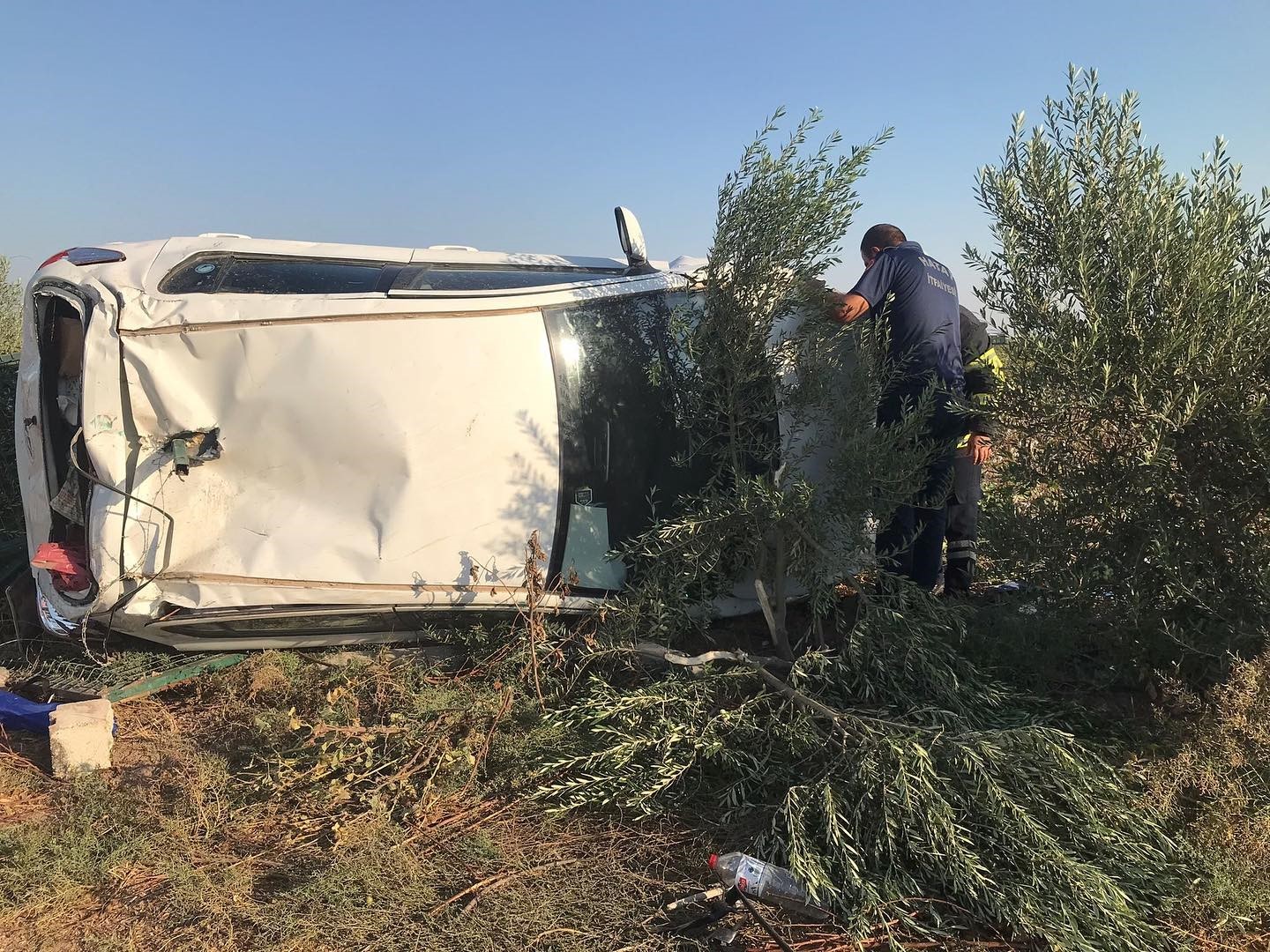 Hatay’da şarampole devrilerek yan duran otomobildeki 2 kişi yaralandı.