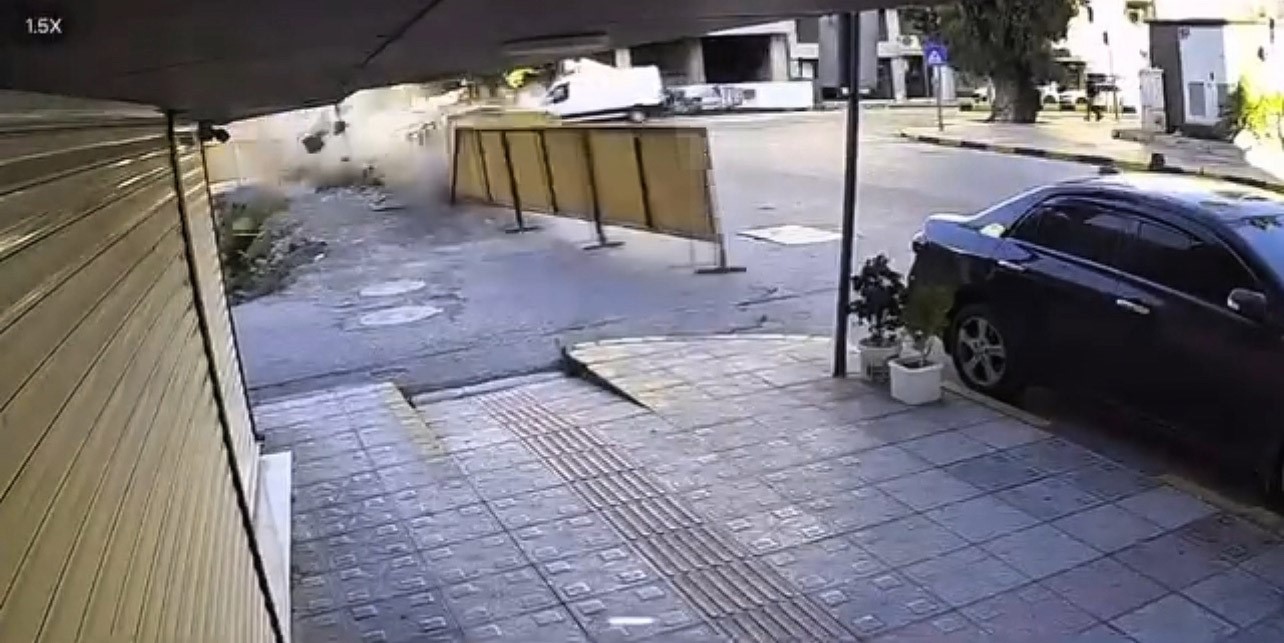 Hatay’ın İskenderun ilçesinde otomobille çarpışan cipin inşaatı çevreleyen bariyerleri yıktığı anlar güvenlik kamerasına yansıdı.