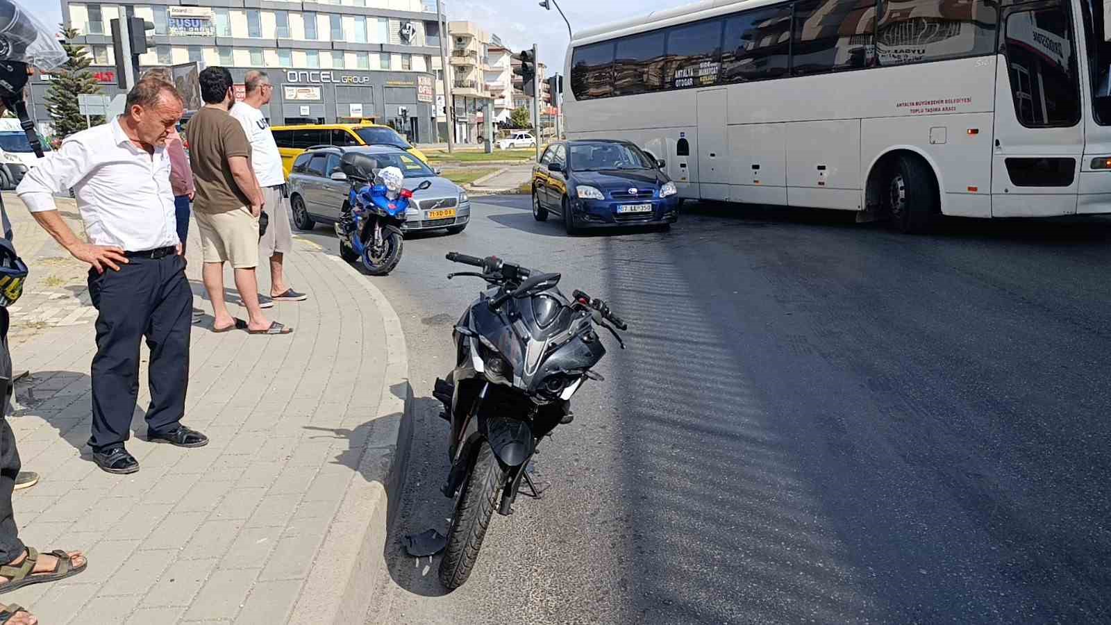 Kaza; Alanya-Antalya D-400 Karayolu’nda meydana geldi. Alınan bilgiye göre, Nüfel K’nın kullandığı 07 BMA 821 plakalı motosiklet, Alparslan Türkeş Bulvarı’ndan çevreyoluna çıkmakta olan Erdal D.’nin kullandığı 07 LL 350 plakalı otomobille çarpıştı. Kazadan kısa süre sonra motosiklet sürücüsü kendisini iyi hissetmediğini belirtirken olay yerine çağrılan ambulansla hastaneye kaldırıldı.