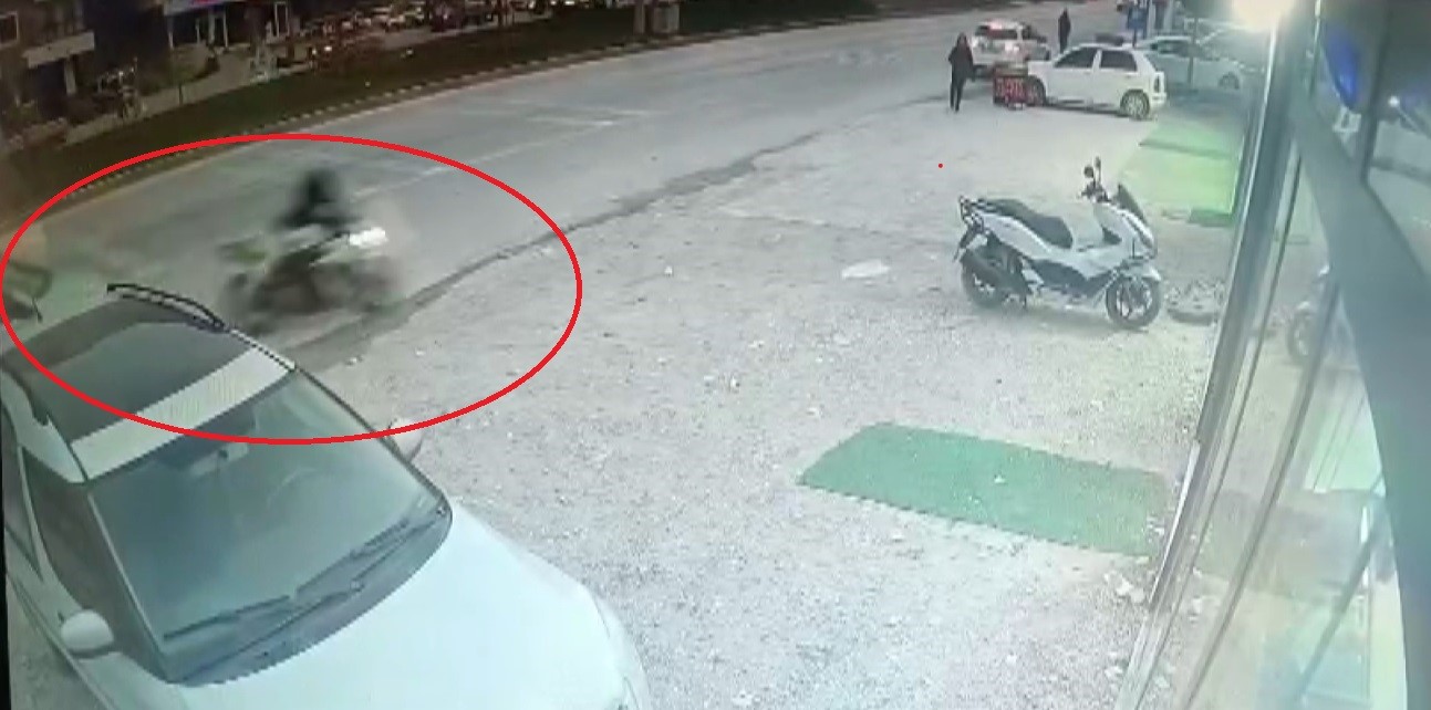 Kaza, Antakya ilçesi çevreyolu Ekinci Mahallesi mevkiinde yaşandı. Çevre yolundan sağa dönüş yapmak isteyen Fiat marka otomobille motosiklet çarpıştı. Motosikletin otomobile ok gibi sağlandığı kazada devrilen motosikletin sürücüsü metrelerce sürüklendi. Motosiklet sürücüsünün yaralandığı feci kaza anbean güvenlik kamerasına yansıdı.