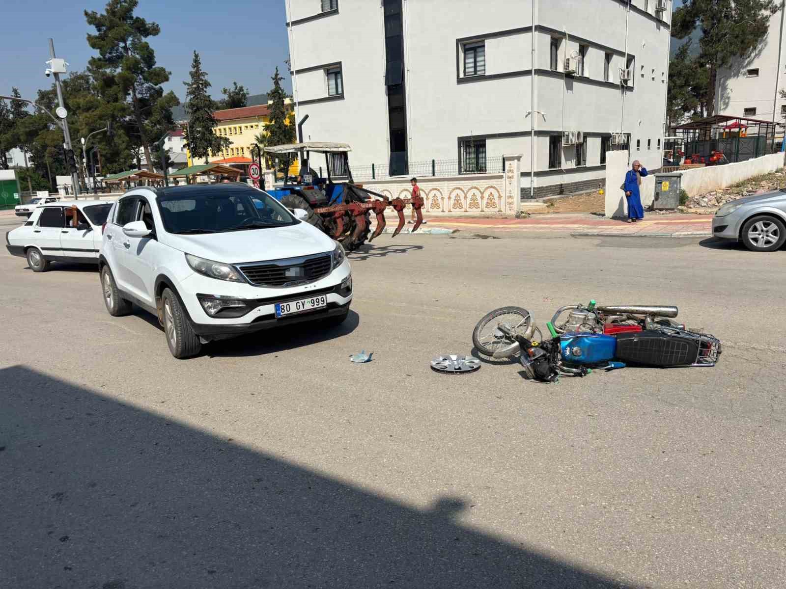 Osmaniye’nin Bahçe ilçesinde iki otomobil ile çarpışan motosikletin sürücüsü yaralandı.