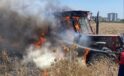 Tarlada çalışan traktör alev alev yandı