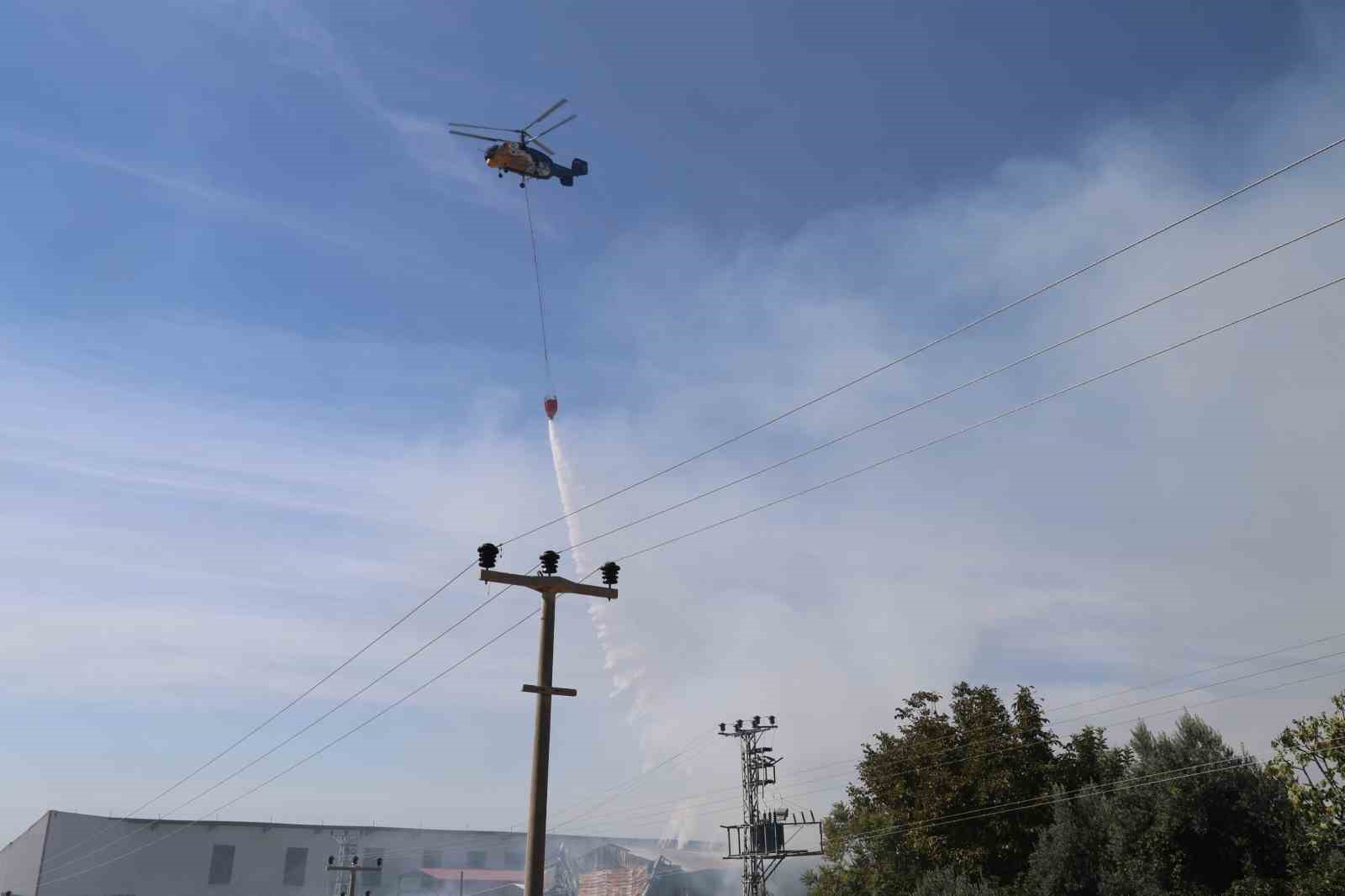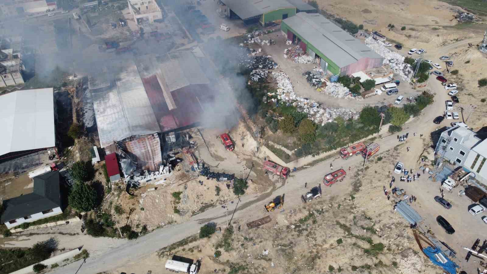Adana’nın Kozan ilçesinde organize sanayi bölgesindeki narenciye ve tarım ürünleri paketleme tesisinde çıkan yangın itfaiye ve orman işletme müdürlüğüne ait ekiplerin kara ile havadan müdahalesiyle söndürüldü. Yanan fabrika dronla görüntülendi.