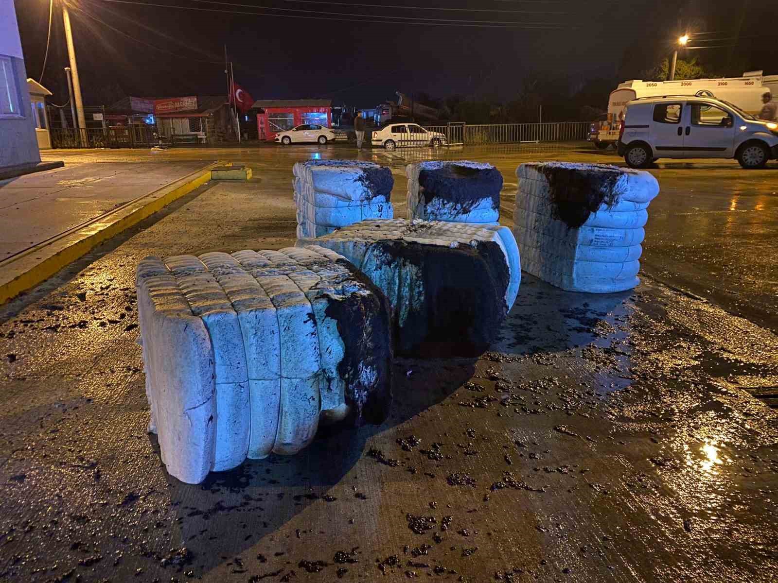 Edinilen bilgiye göre, saat 20.00 sıralarında Serik ilçesi Çandır Mahallesi’nde sıkıştırılmış pamuk balyalarının bulunduğu depoda bilinmeyen bir nedenle yangın çıktı. Çalışanların depodan çıkan dumanı fark edip 112’yi araması üzerine olay yerine itfaiye ve jandarma ekipleri sevk edildi. Dumanlar çıkan 5 adet sıkıştırılmış pamuk balyası, depoya ait iş makinası ile bahçeye çıkartıldı. 2 itfaiye aracının müdahalesi ile balyalar kısa sürede söndürüldü. Olayda depo içerisinde bulunan 5 adet sıkıştırılmış pamuk balyası yanarak zarar görürken, yangın maddi hasarla atlatıldı.