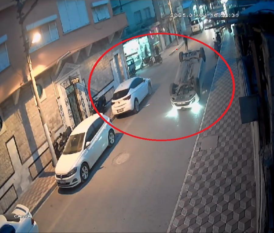 Kaza, İskenderun ilçesi Dumlupınar Mahallesi’nde yaşandı. Sokakta ilerleyen bir otomobil, park halindeki araca çarparak takla attı. Kazada otomobilin sürücüsü hafif yaralandı. Park halindeki araca çarpıp takla atan otomobilin o anları saniye saniye güvenlik kamerasına yansıdı. Kazayı gören çevredeki vatandaşın durumu 112 Acil Çağrı Merkezi’ne bildirmesi üzerine olay yerine polis, ambulans ve itfaiye ekipleri sevk edildi. Kısa sürede bölgeye gelen itfaiye ekipleri, sürücüyü kurtararak sağlık ekiplerine teslim etti. Sağlık ekipleri kazada hafif yaralanan sürücüye müdahale etti. Olay yerine gelen vinç, otomobili kaldırarak trafik akışını yeniden sağladı.