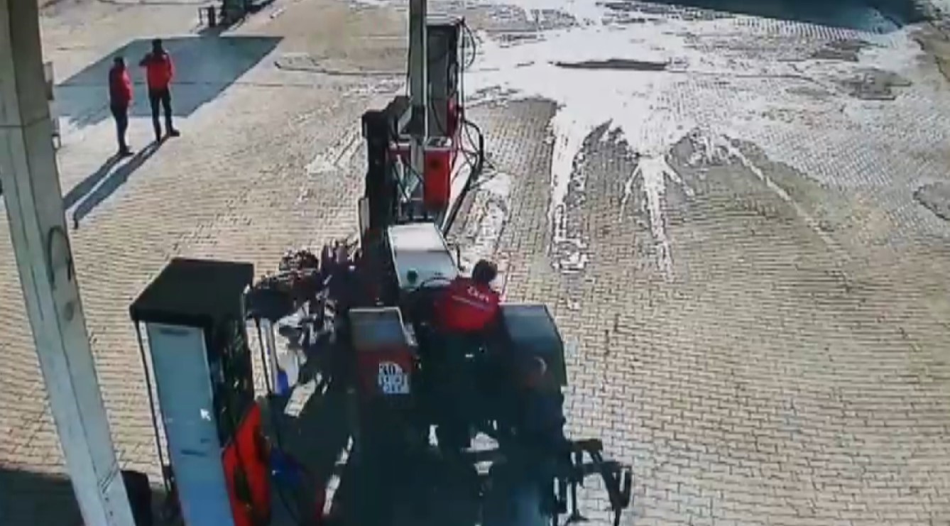 Hatay’ın Reyhanlı ilçesinde akaryakıt istasyonu çalışanı, park etmek için direksiyonuna geçtiği traktör ile pompaya çarptı. Korku dolu anların yaşandığı kazada herhangi bir patlama yaşanmazken tedirgin eden anlar kameraya yansıdı.