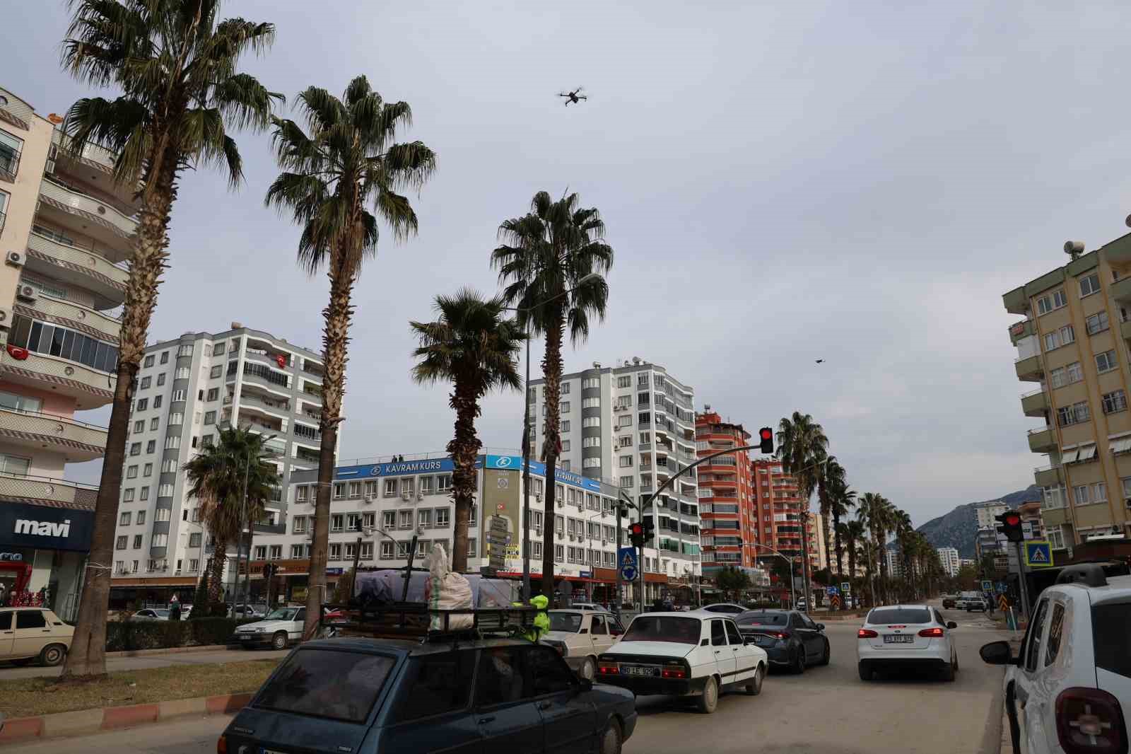 Adana’nın Kozan ilçesinde polis, trafik kuralı ihlali yapan sürücüleri dron ile tespit edip cezai işlem uyguladı.