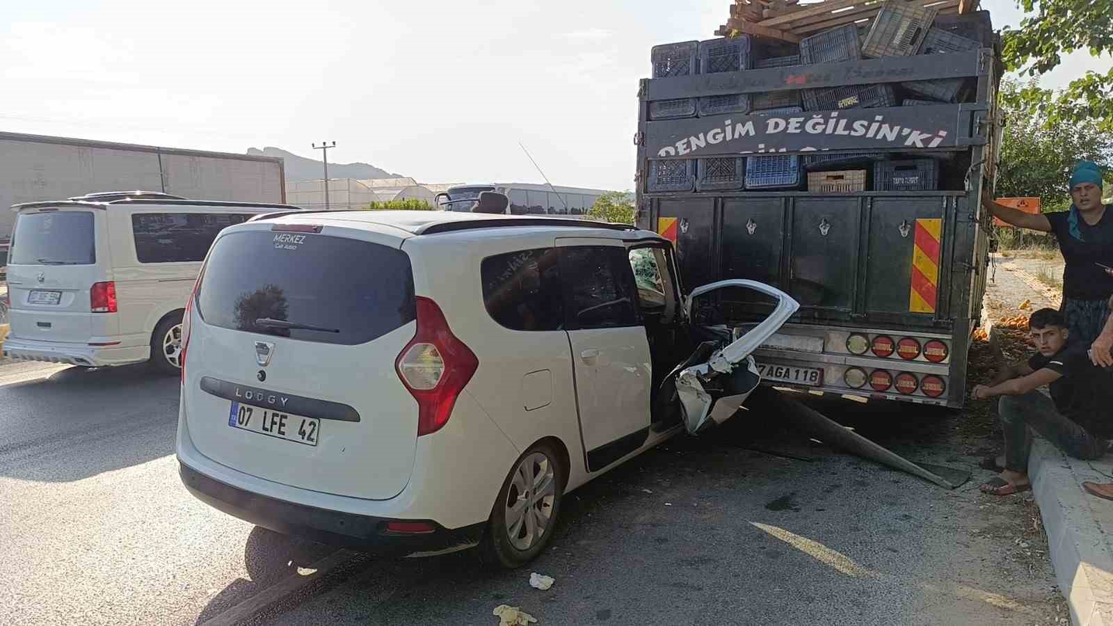Kaza, Manavgat-Antalya D-400 Karayolunda meydana geldi. Edinilen bilgiye göre, Burak E. D.’nin kullandığı 07 LFE 42 plakalı hafif ticari araç, aynı istikamette seyir halindeki Süleyman Tuna’nın kullandığı 07 AGA 118 plakalı portakal yüklü kamyona arkadan çarptı.