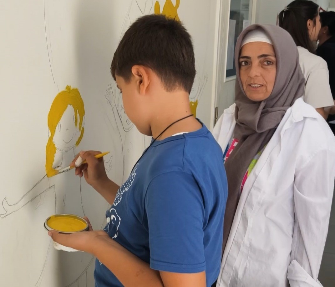 ADANA (İHA) – Adana’da 11 yaşındaki otizmli Ömür Kaan, resim kursu ile engelleri aşıyor. Belediyenin resim kursunda kendini geliştiren Ömür Kaan, şimdi koridorları boyuyor.