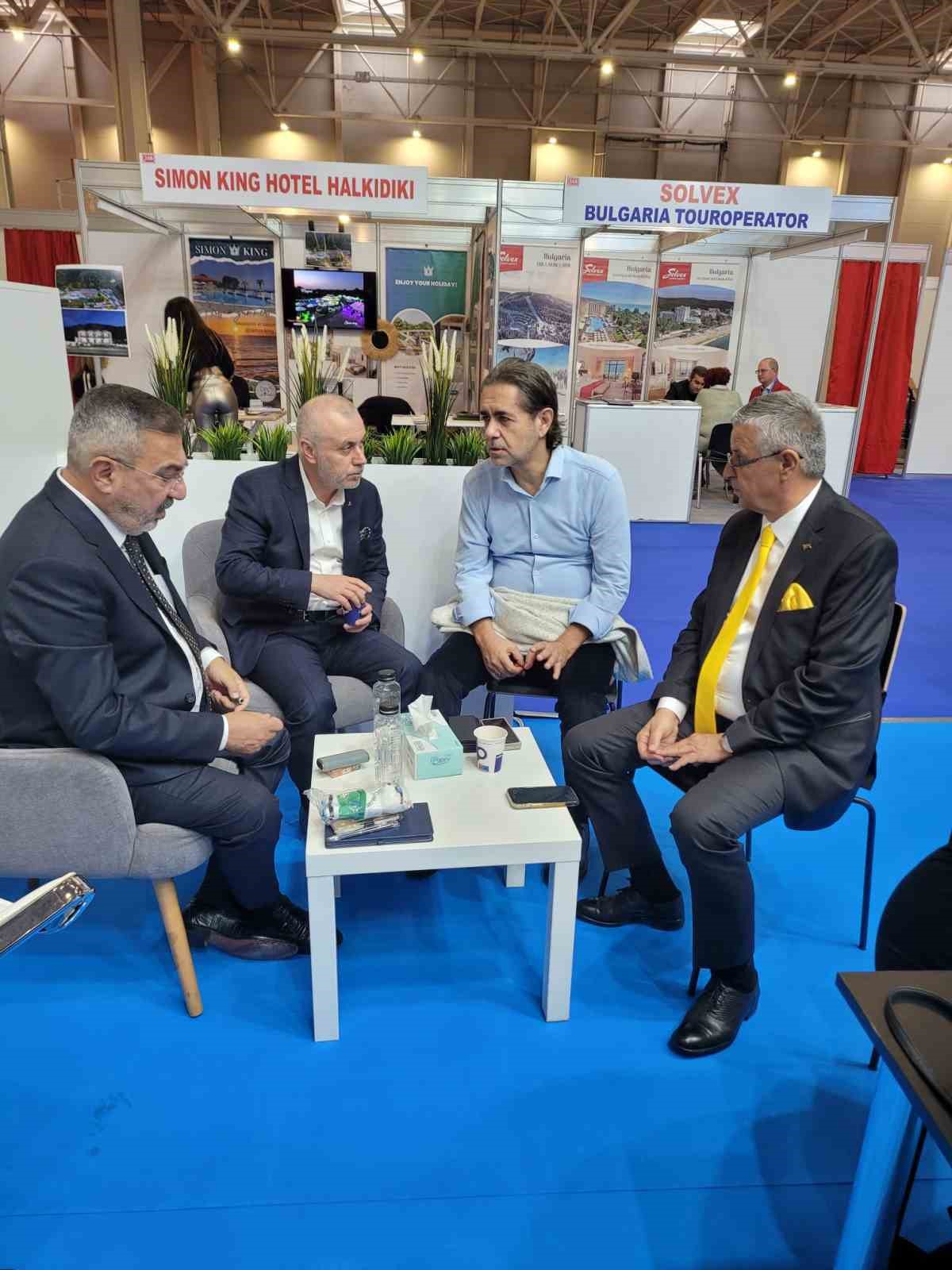 Başkan Topaloğlu, fuar alanında Romanya’nın en eski tur operatörlerinin sahipleri Hamit Gazez, Alexandru Marginean, ve Cristian Pandel ile görüşmeler gerçekleştirdi.