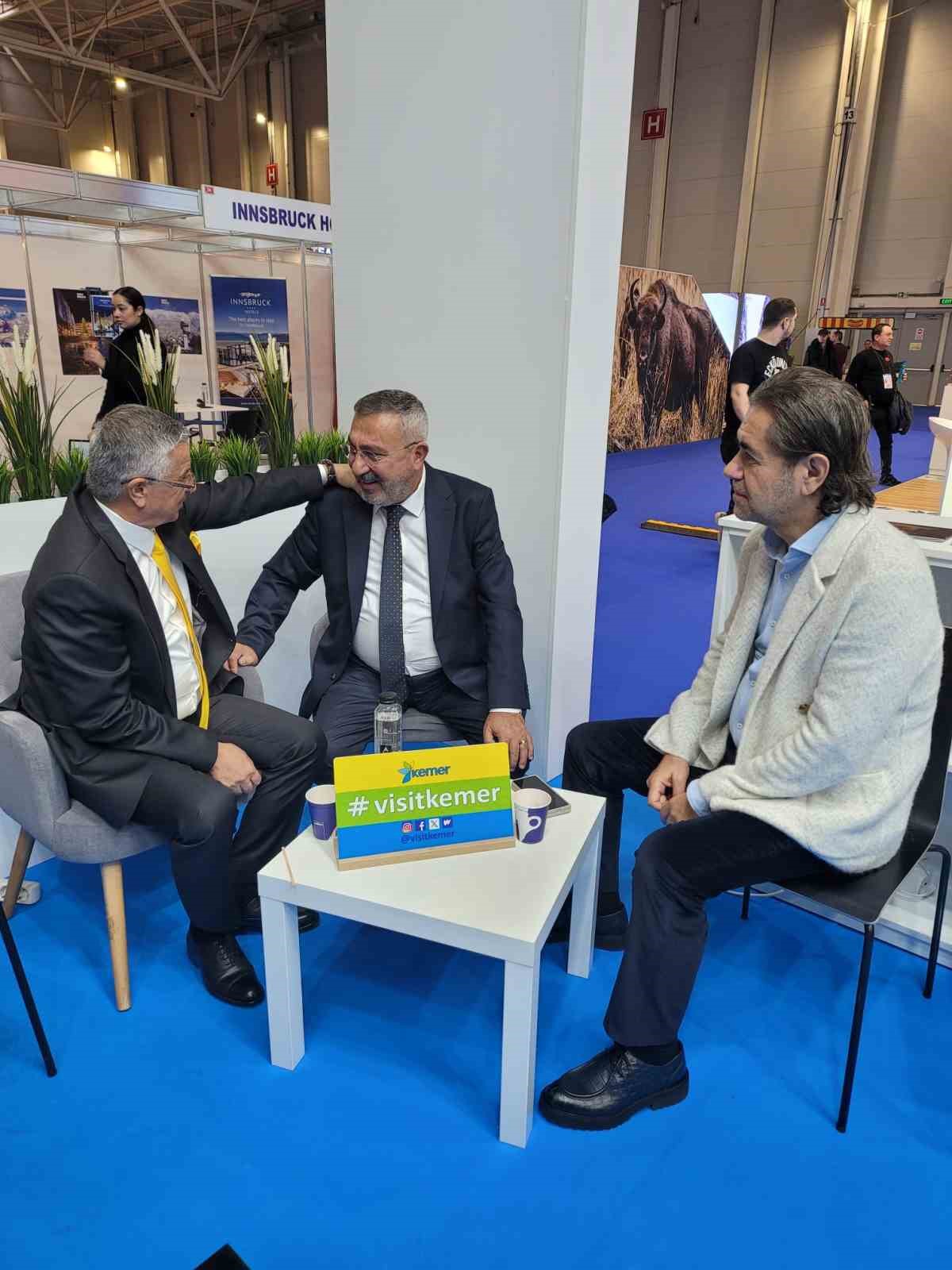 Kemer’in ulusal ve uluslararası platformlarda hak ettiği yere gelmesi için tanıtım çalışmalarını hızla sürdüren Başkan Topaloğlu, yaptığı ikili görüşmelerde Kemer hakkında bilgiler vererek, Kemer’de yapılan ulusal ve uluslararası organizasyonlar, eğlence sektörü, spor turizmi, doğası, denizi, güneşi, tarihi ve gezilebilecek yerleriyle ilgili sunumlar yapıyor.
